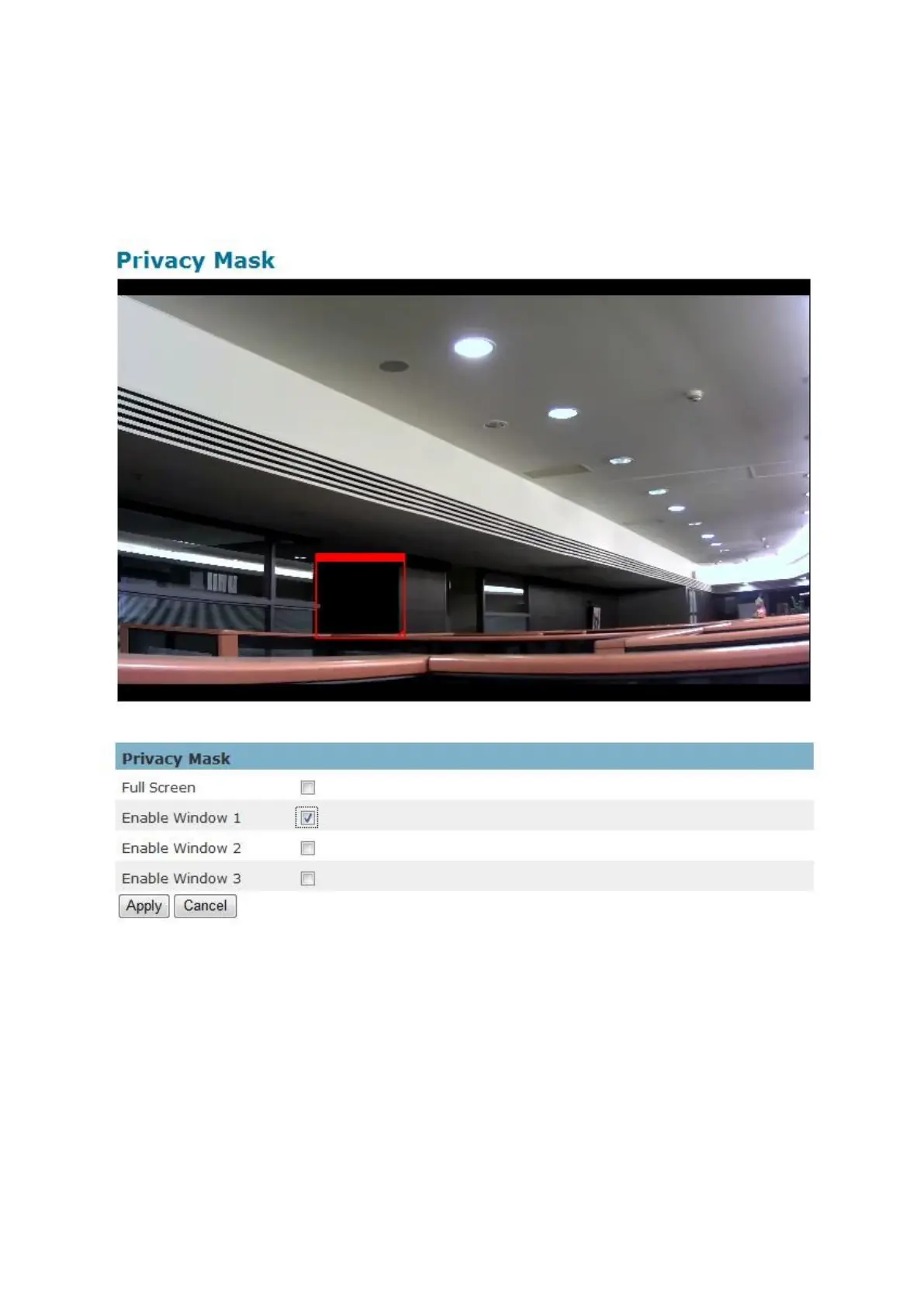 and recording from the camera. Configure the privacy windows for up to three individual
