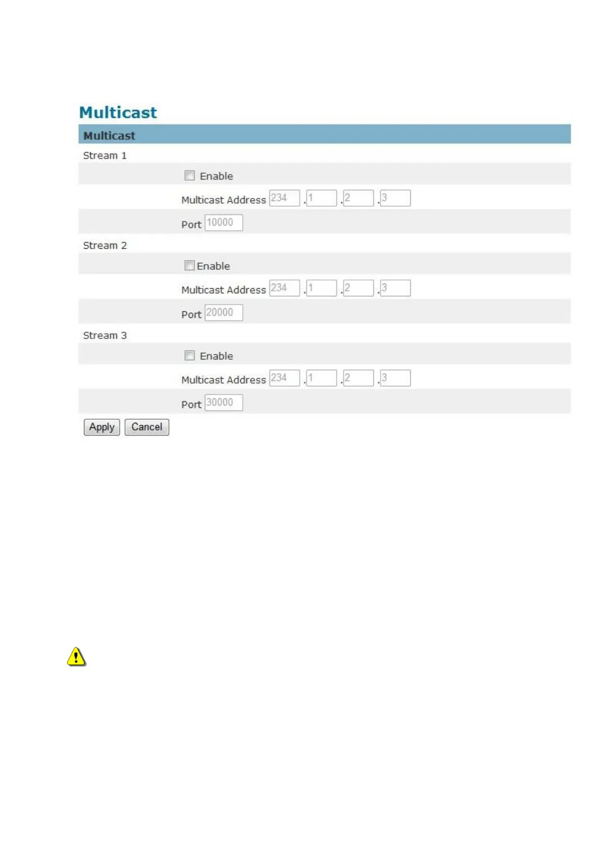 Click “Enable” to enable Multicast stream 1, Multicast stream 2 or Multicast stream 3. The
