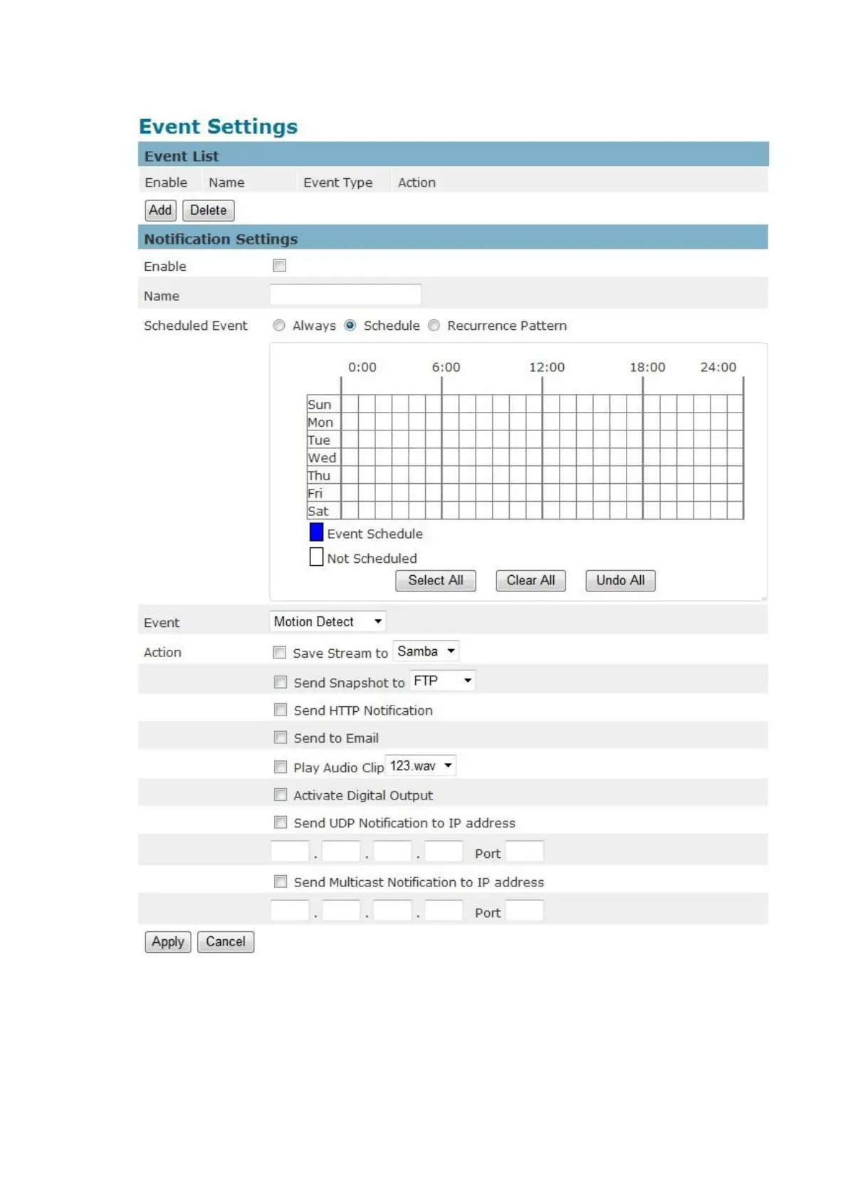 ii. Click individual boxes to schedule specific times for the camera to detect