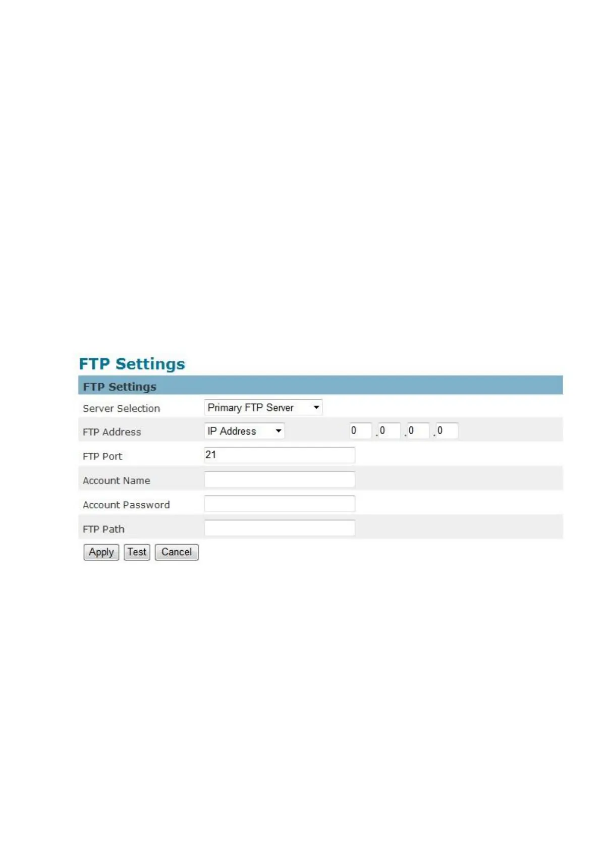 down menu to send media files to a FTP server when an event is triggered. Enter the FTP IP