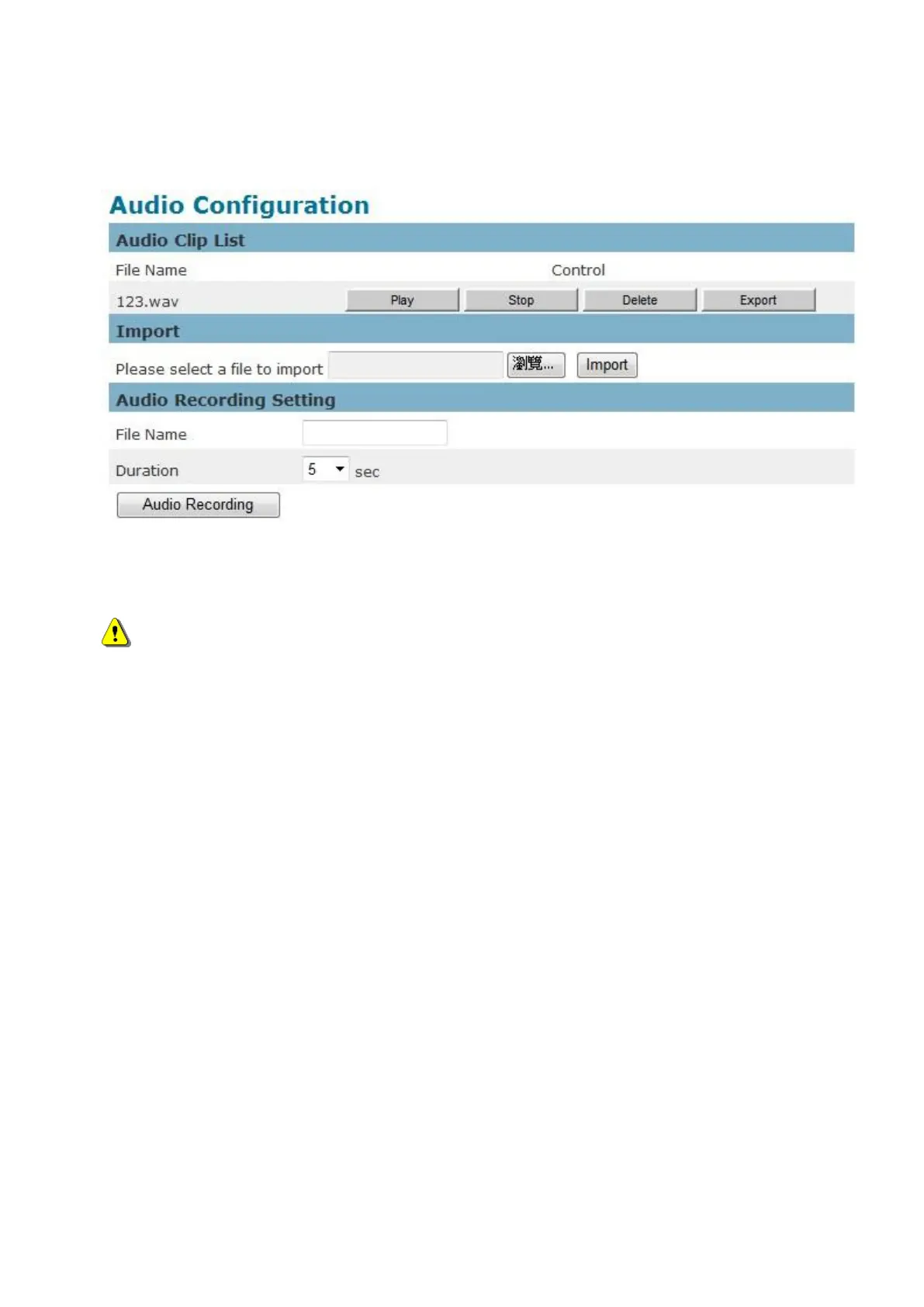 NOTE – The camera can only play audio clips which are saved as .wav files with G.711