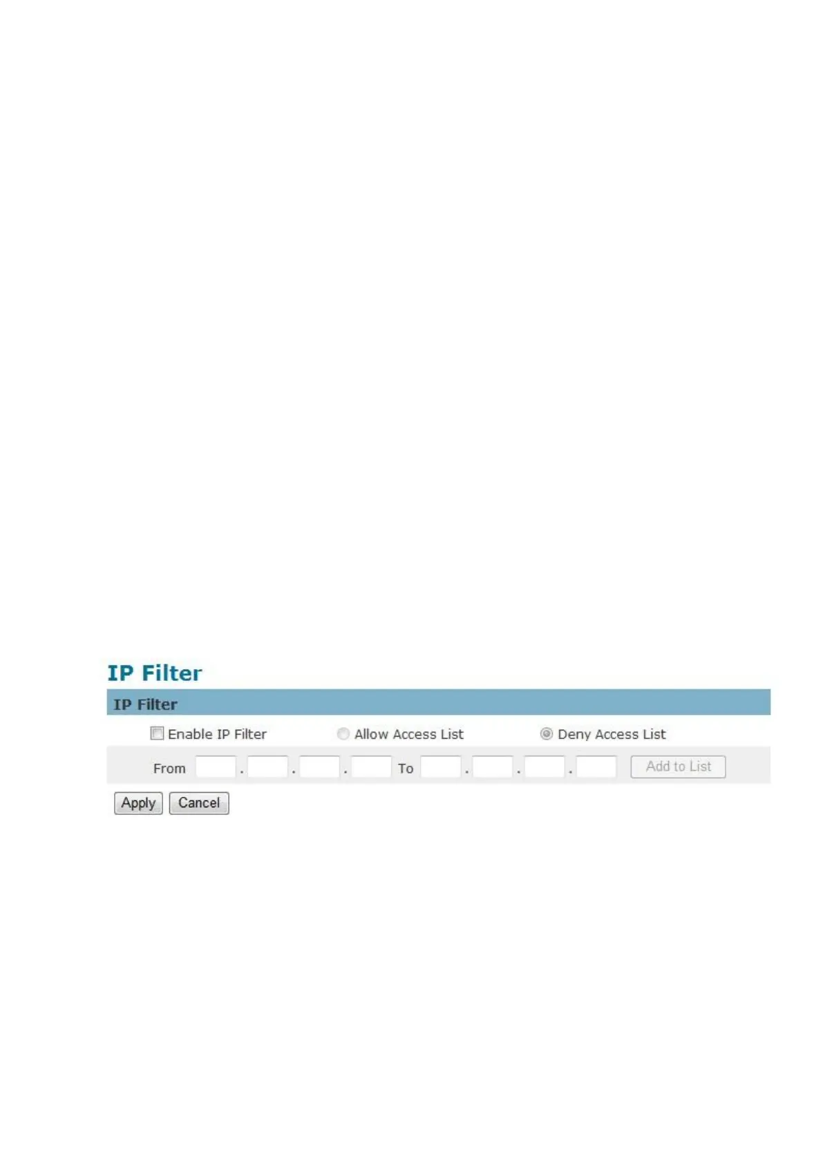 The IP Filter is used to filter the IP addresses which are able to access the network camera.
