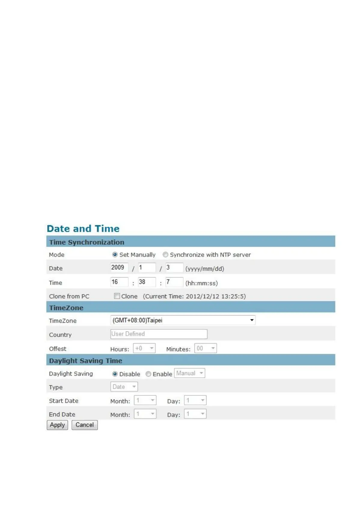 system. Select to update the time with a NTP server on an hourly, daily, weekly, or monthly