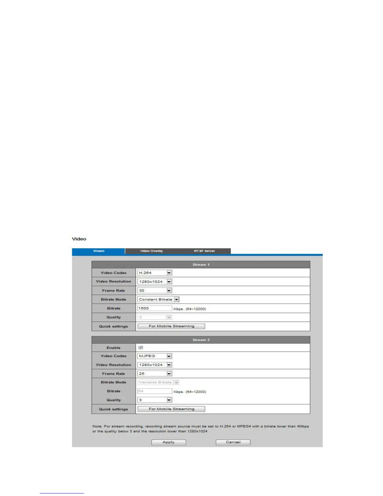with H.264 and MPEG4 video codec. Only "quality" can be chosen when MJPEG video codec is