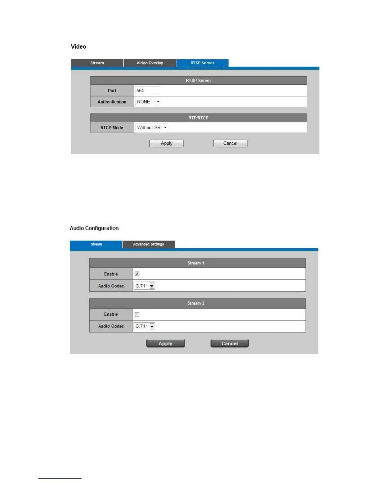 devices. The administrator can enable or disable the audio function on either stream. If audio enable