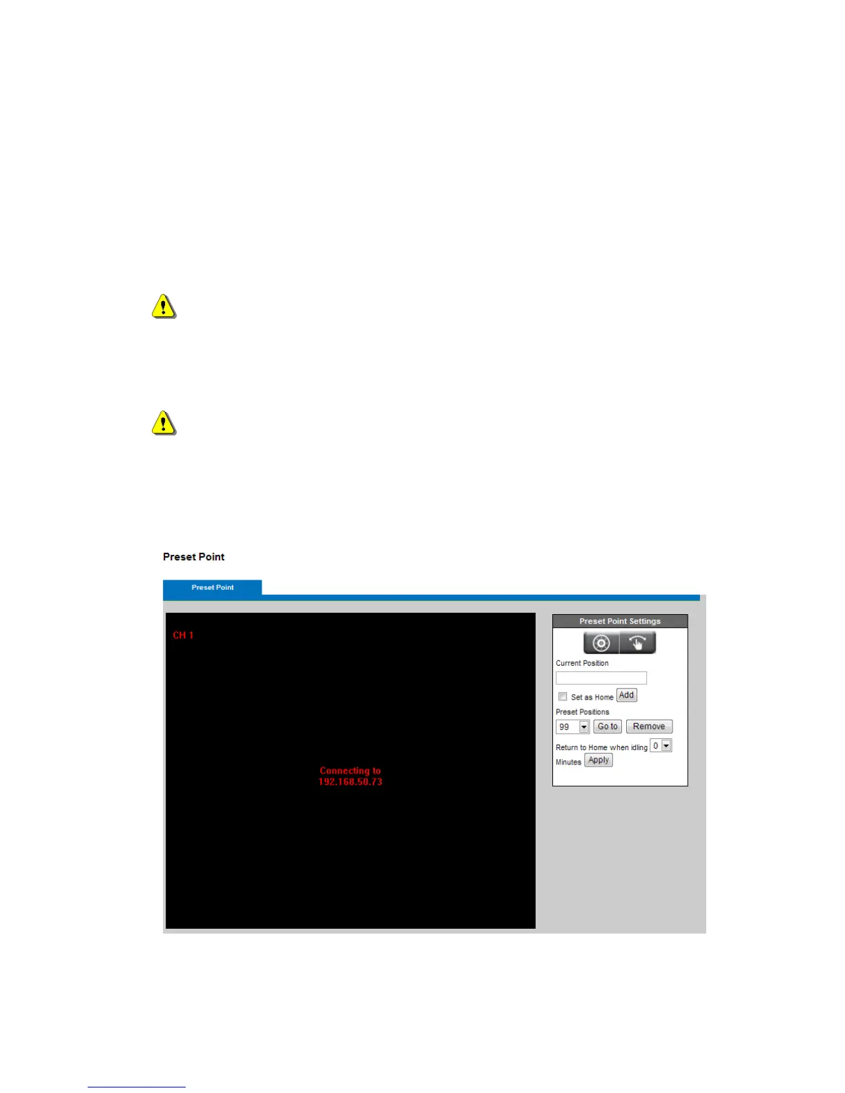 NOTE - The name of the preset point set as Home will have (H) added; for example, Gate (H).