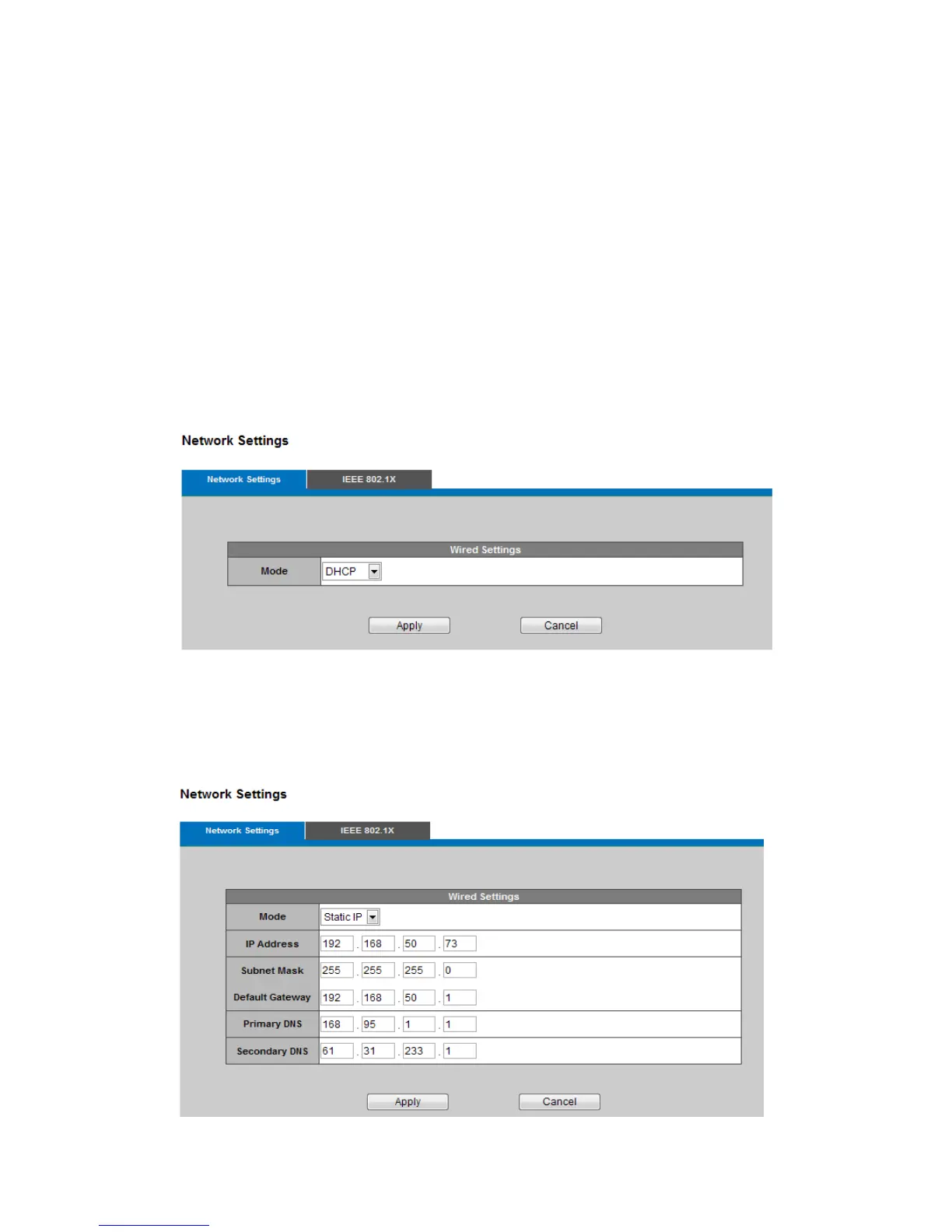 Select this option to manually assign a static IP address to the Network Camera. Enter the static IP