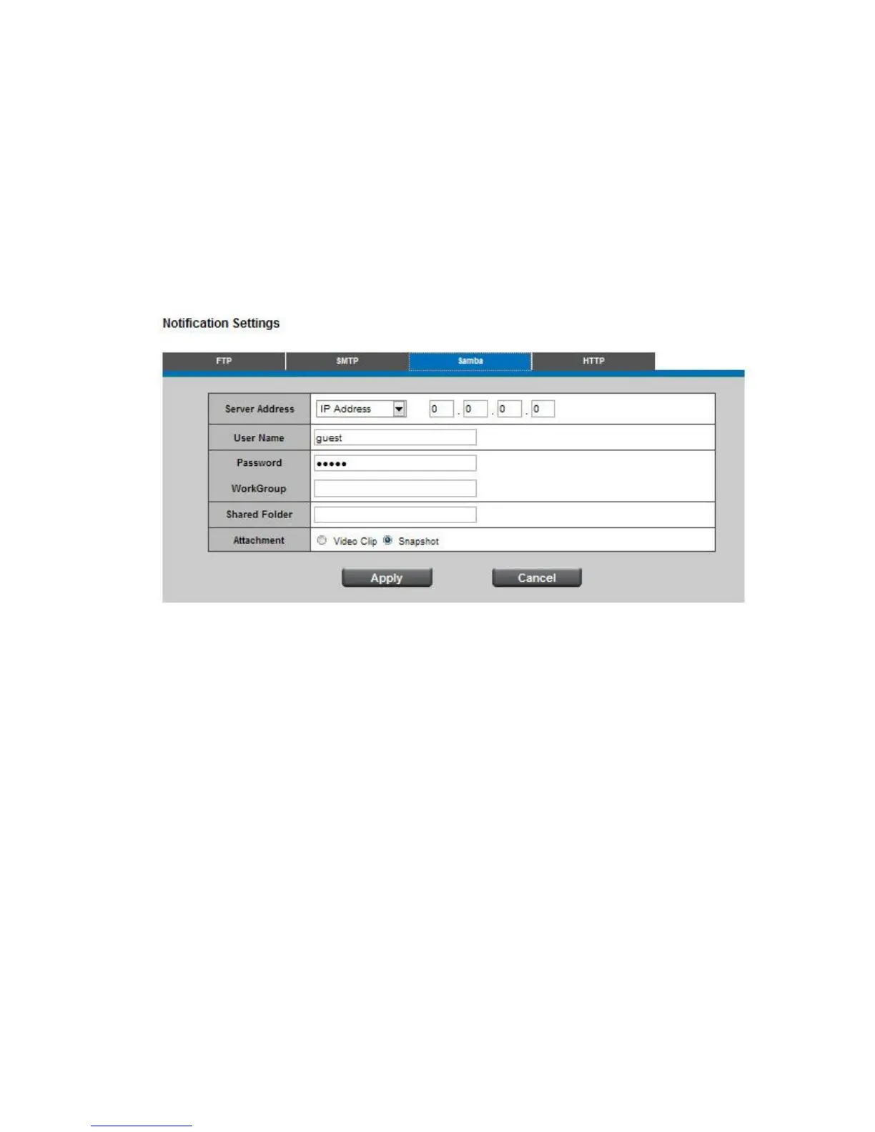 Server Address - Enter the IP address of the Samba server.