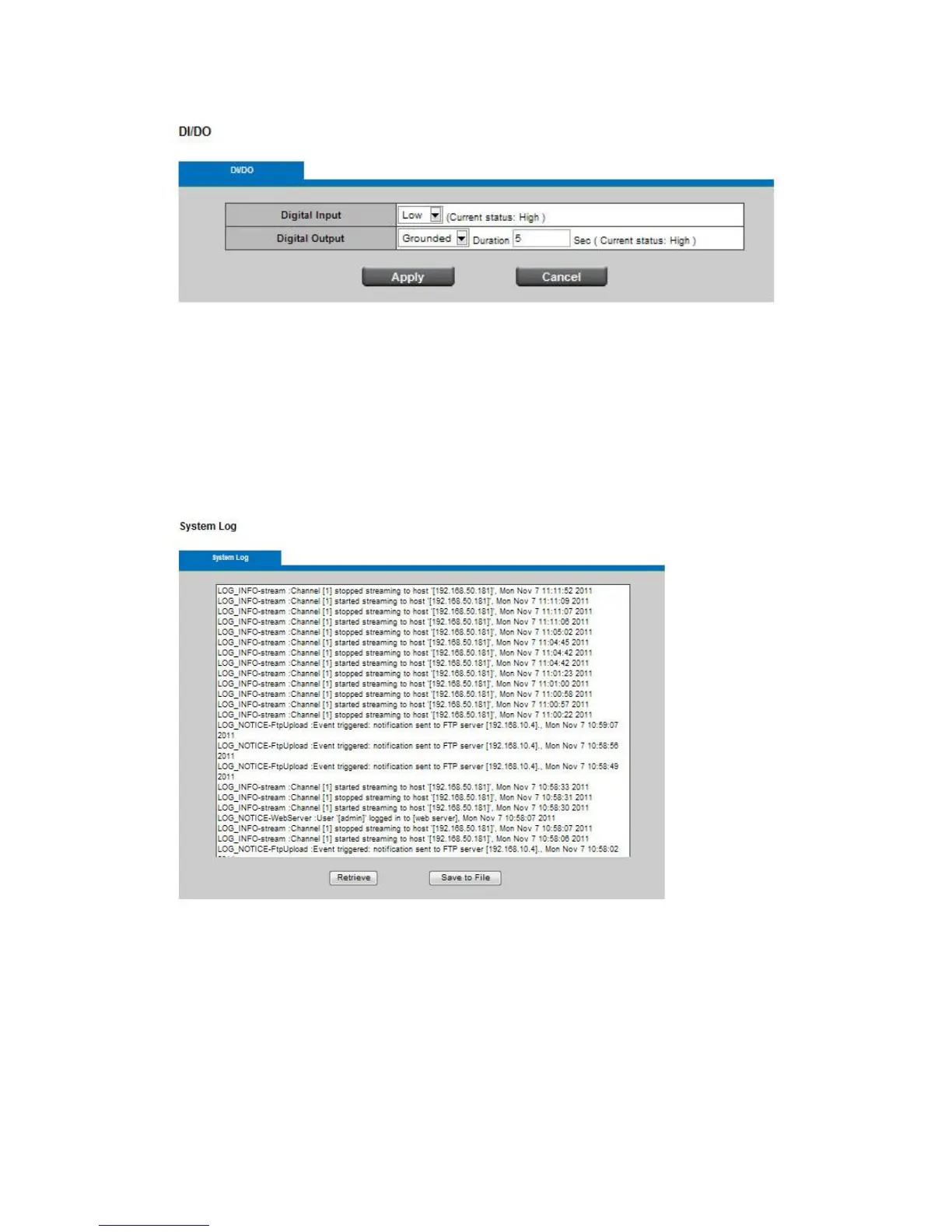 Click Retrieve to retrieve the log or Save to file to save the file to a specified location.