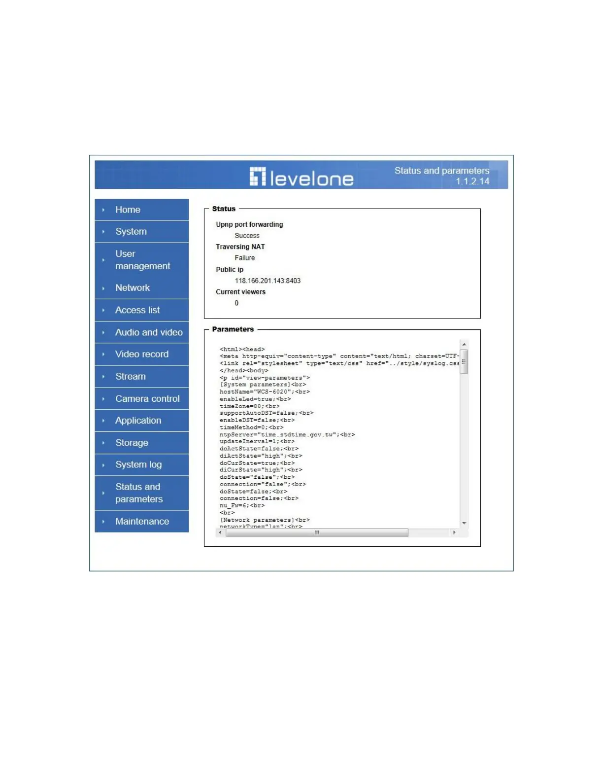 LevelOne FCS-6020 - Status and Parameters