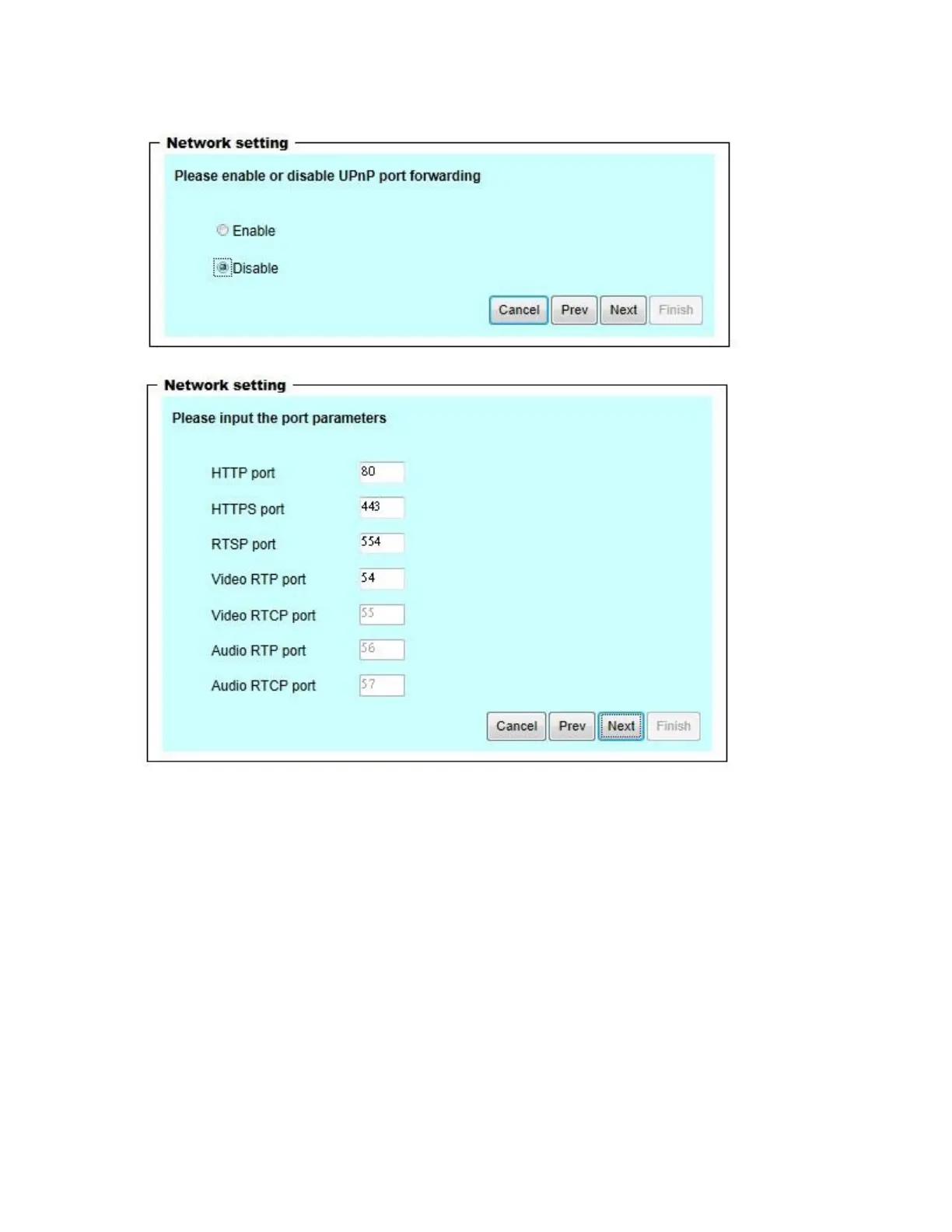 2. Go to camera Network page. Disable UPnP port forwarding function.