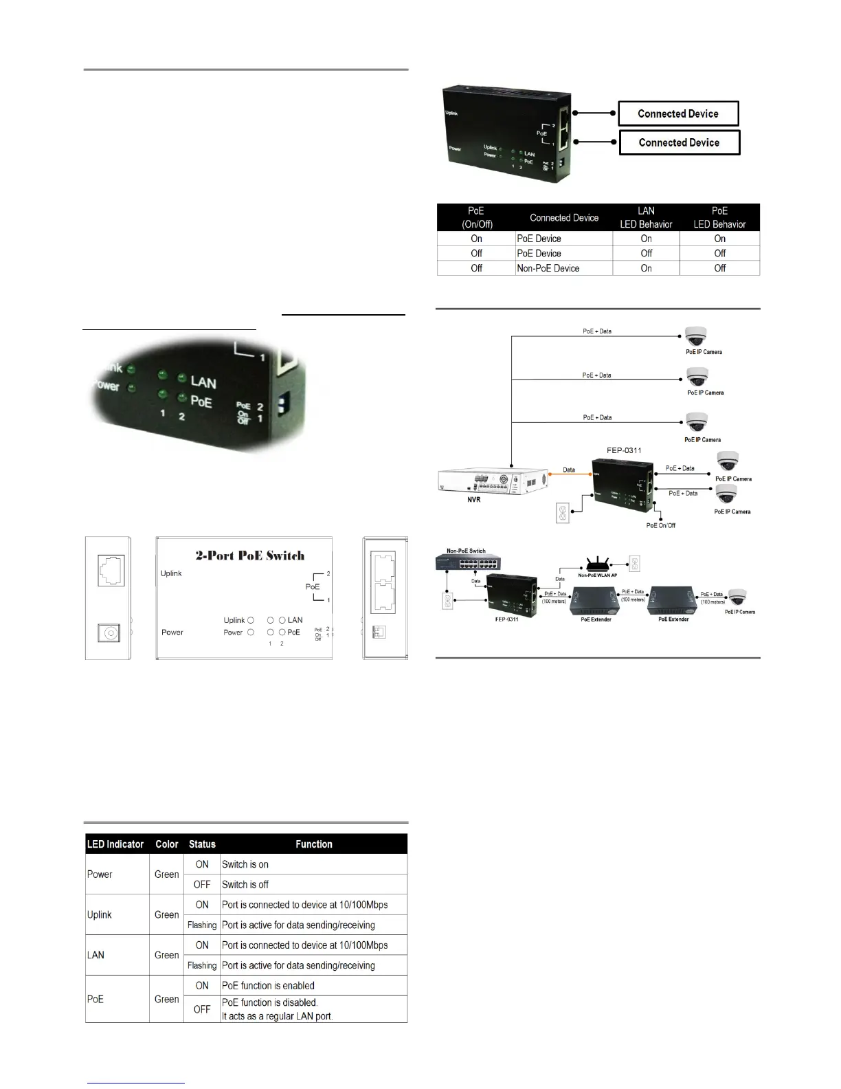 LED Indicators Power / Uplink / LAN 1~2 / PoE 1~2