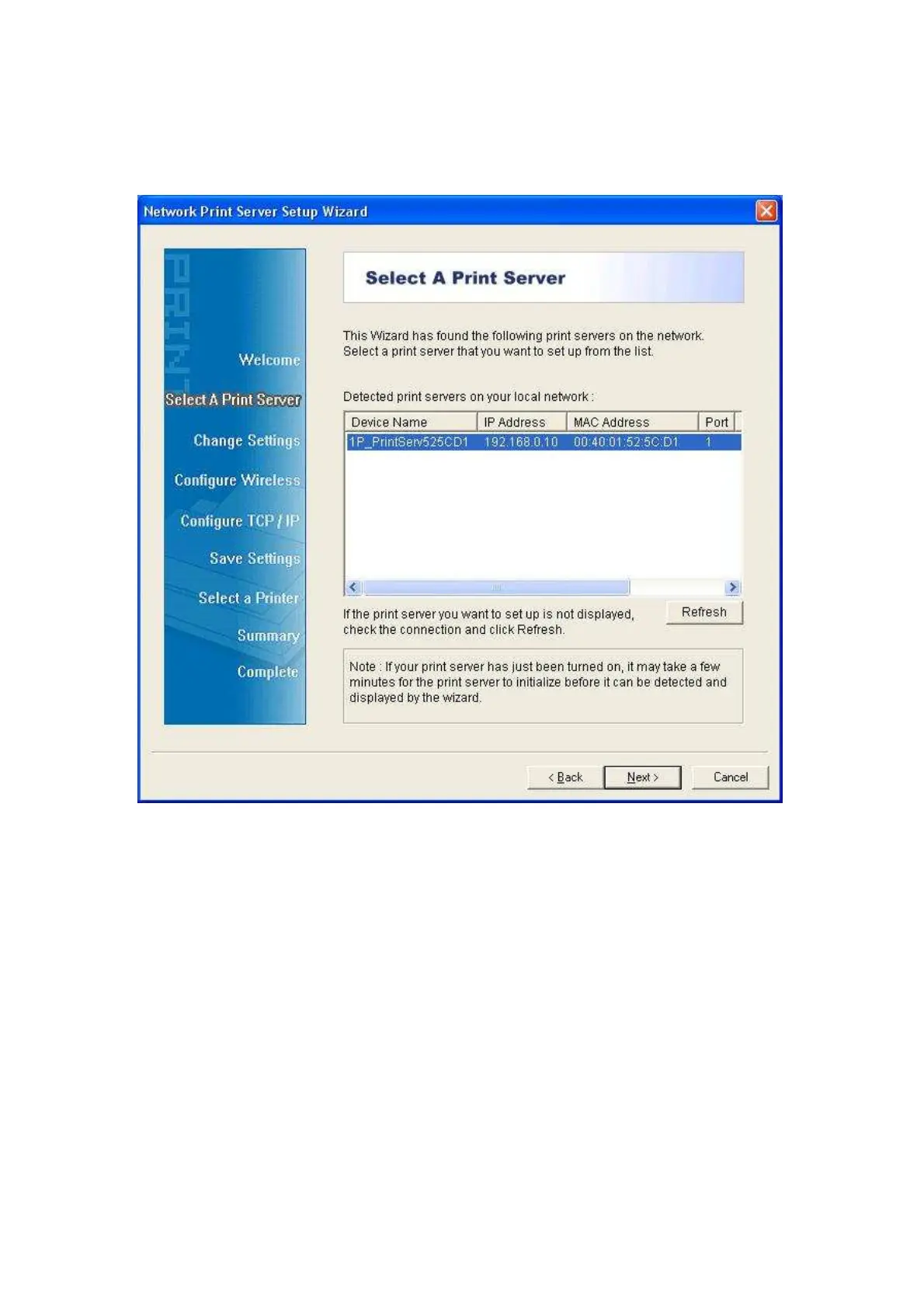 6. From the Select A Print Sever screen, select the print server that you want to configure