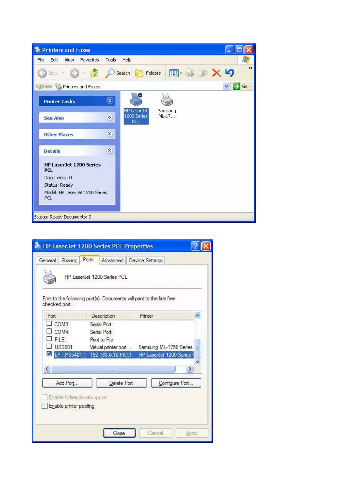 17. Right-click, select Properties -> Ports and verify that the print server’s port appears.