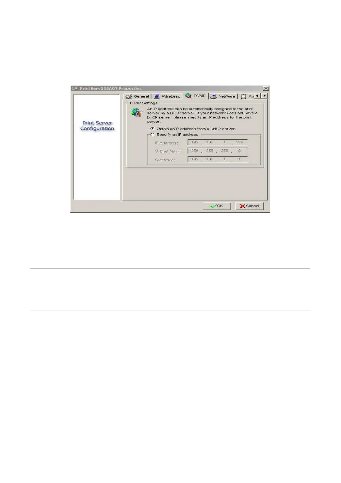 manually specify an IP address to the print server, if DHCP option is disabled.