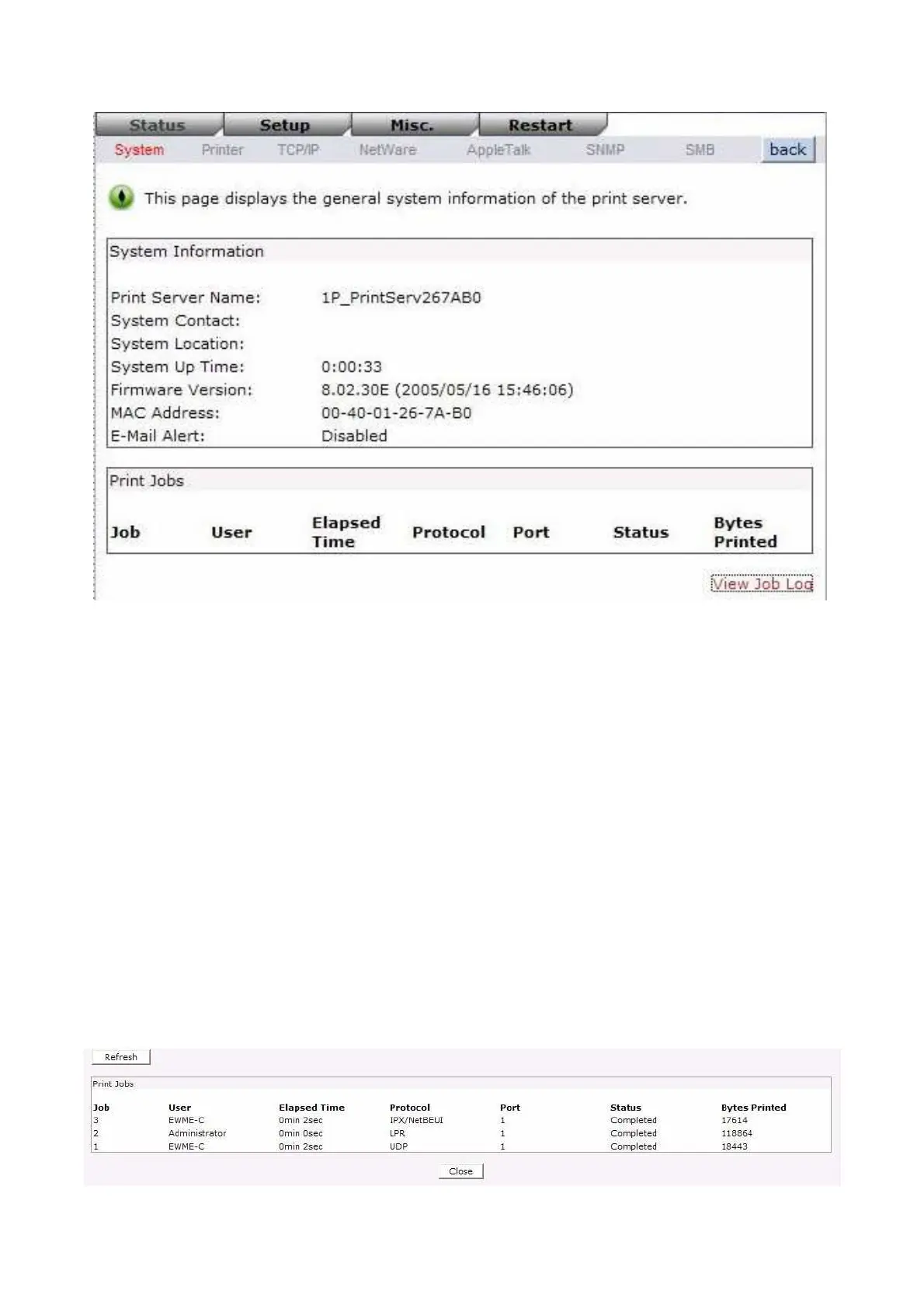 System Up Time: This option allows you to view uptime of the print server. When you start