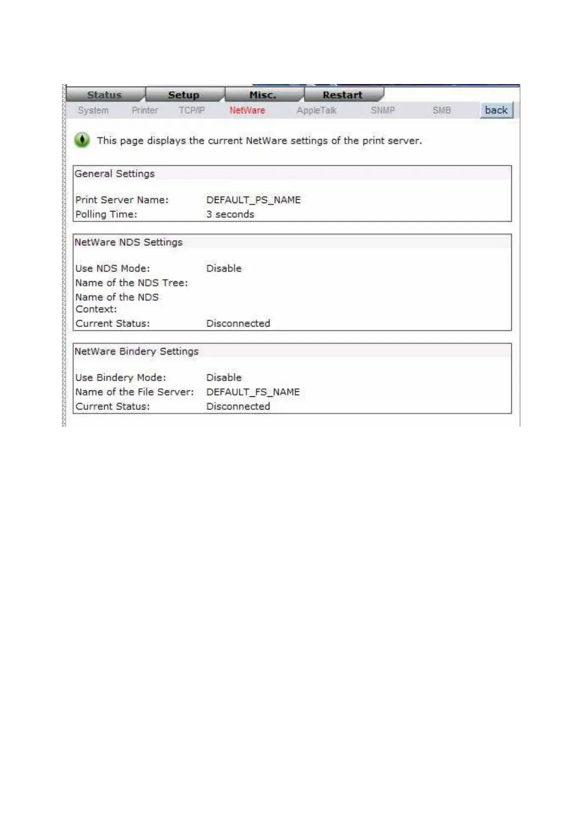 Polling Time: This option allows you to view polling time from the print server. This function is