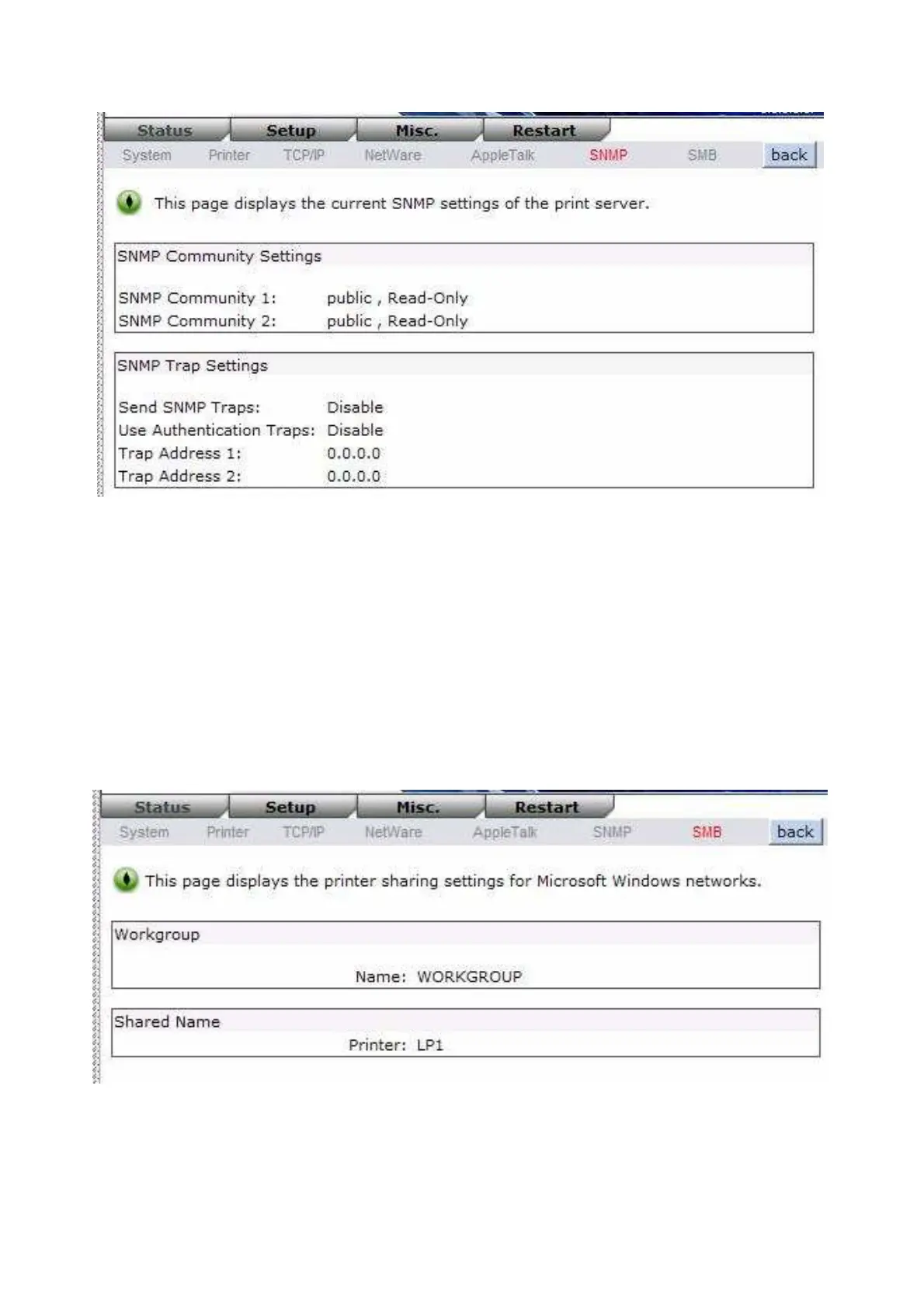 SNMP Traps: This option allows you to view SNMP traps from the print server.
