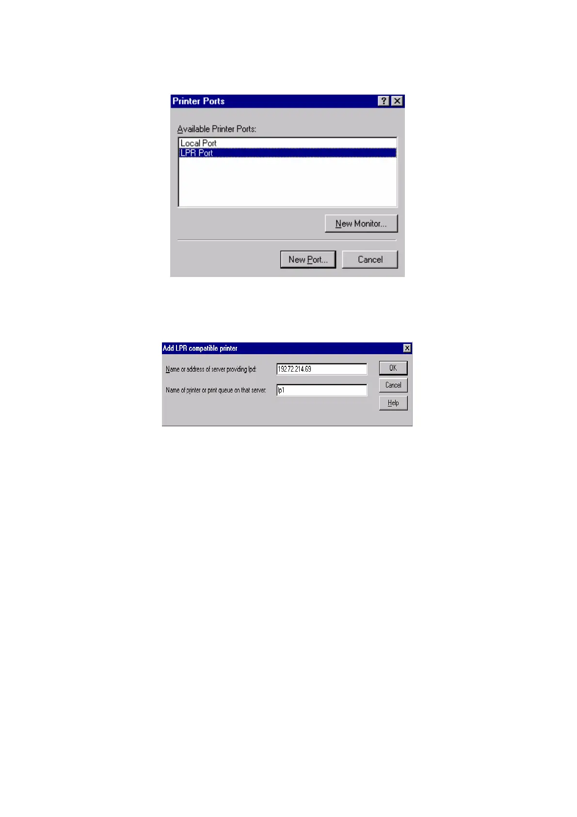 From the Printer Ports box as shown in the following picture, select the LPR Port.