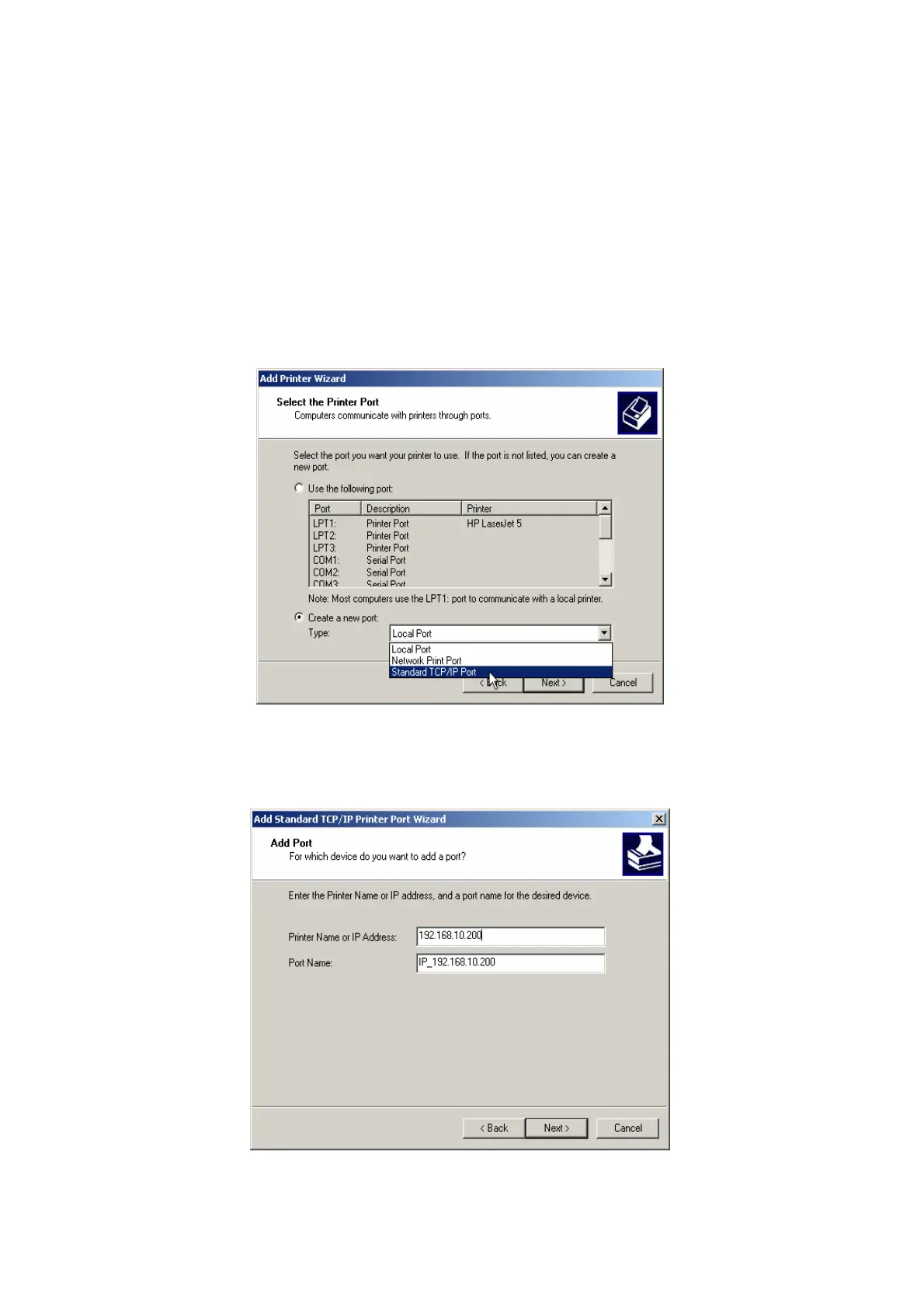 Windows 2000/XP/2003 Standard TCP/IP Port Printing Installation