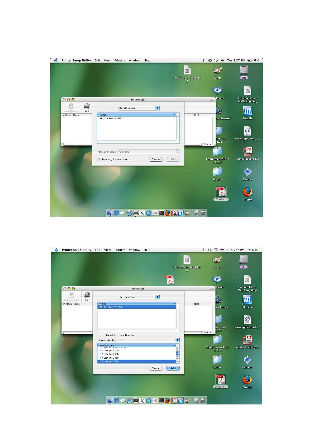 4. Choose "Rendezvous", and then Mac OS will automatically search the print server on