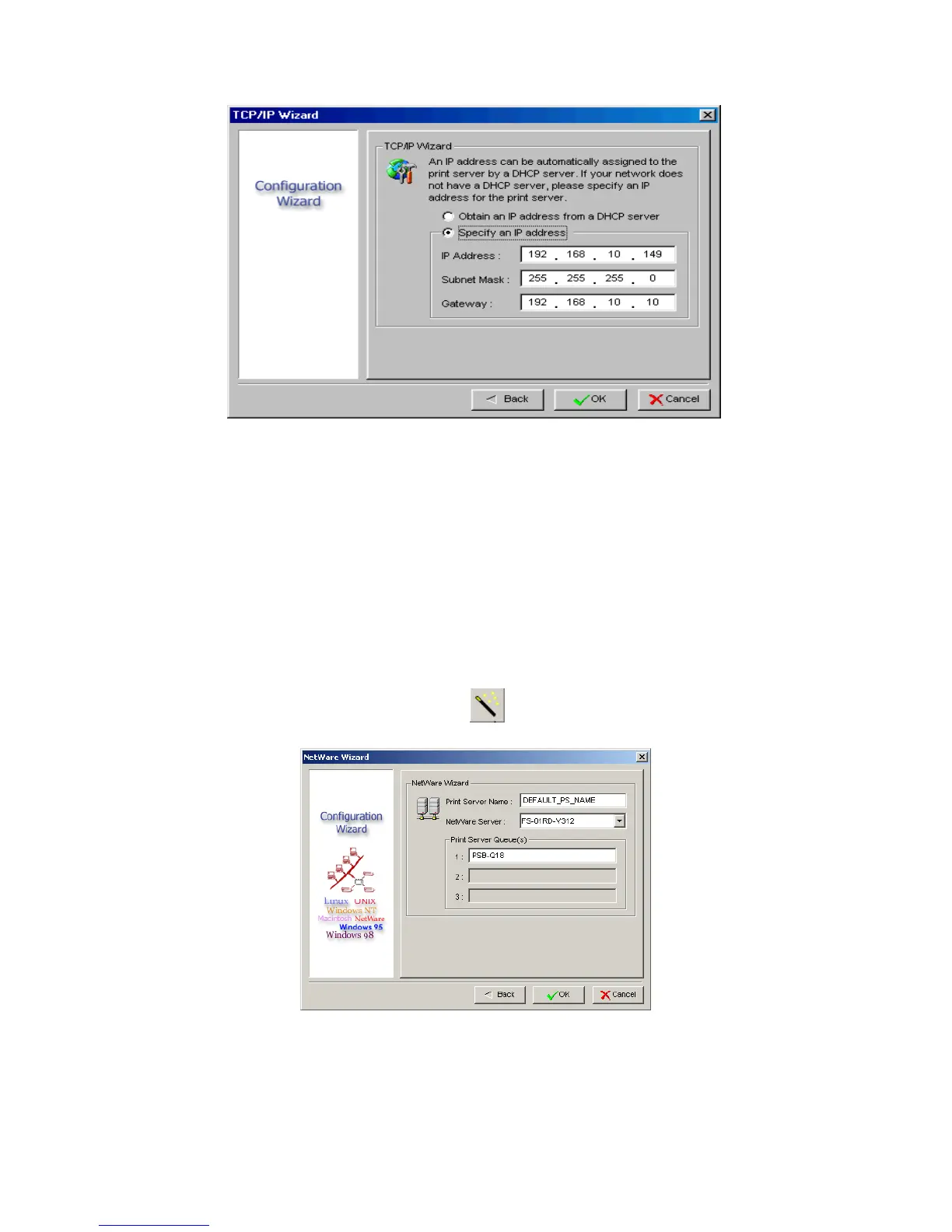 2. Click Wizard button just like a picture < >.and select NetWare Wizard, as follow