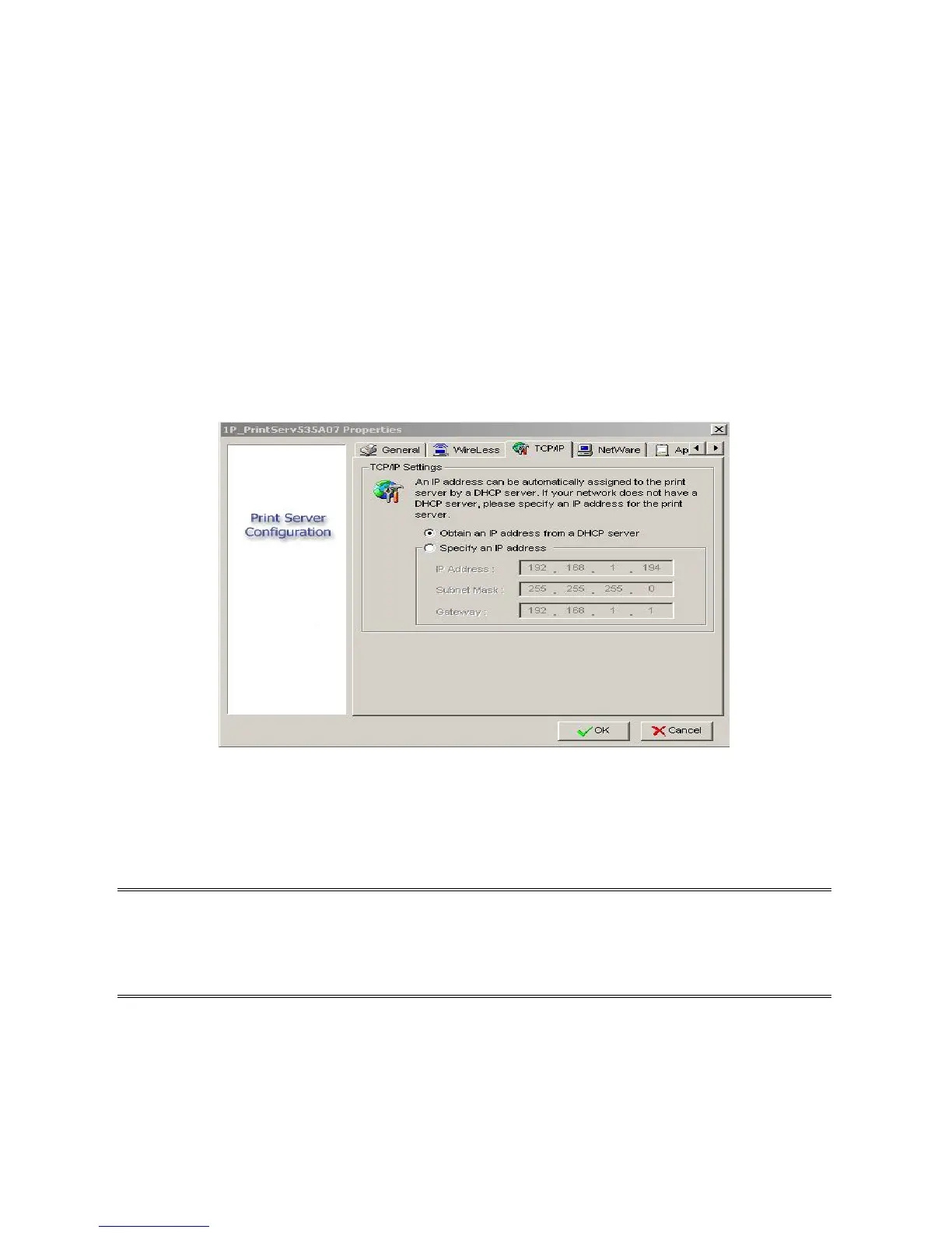 manually specify an IP address to the print server, if DHCP option is disabled.