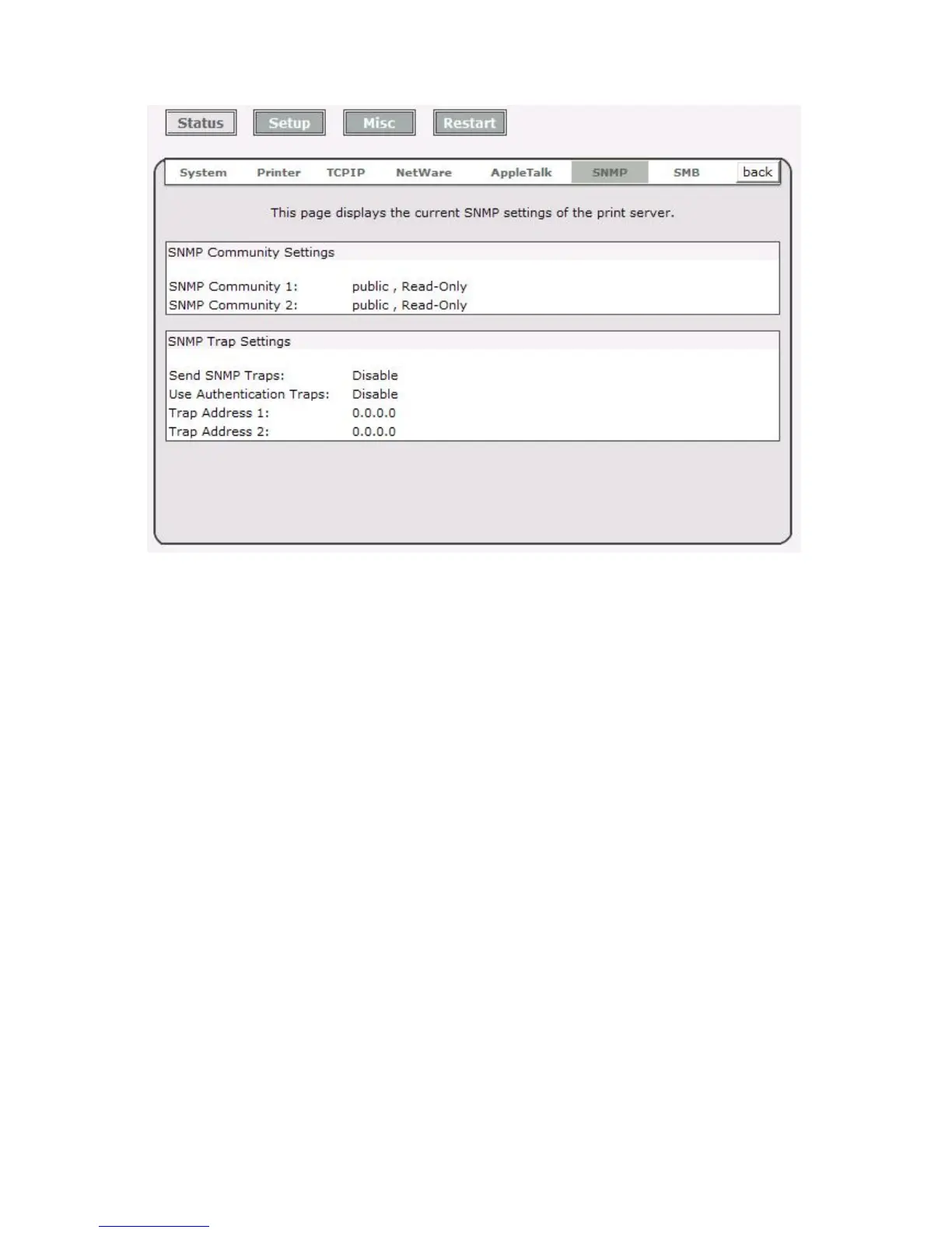 SNMP Traps: This option allows you to view SNMP traps from the print server.