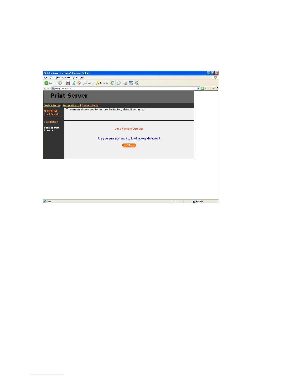 You can use this page to restore the factory default settings. All of your previous setup will be