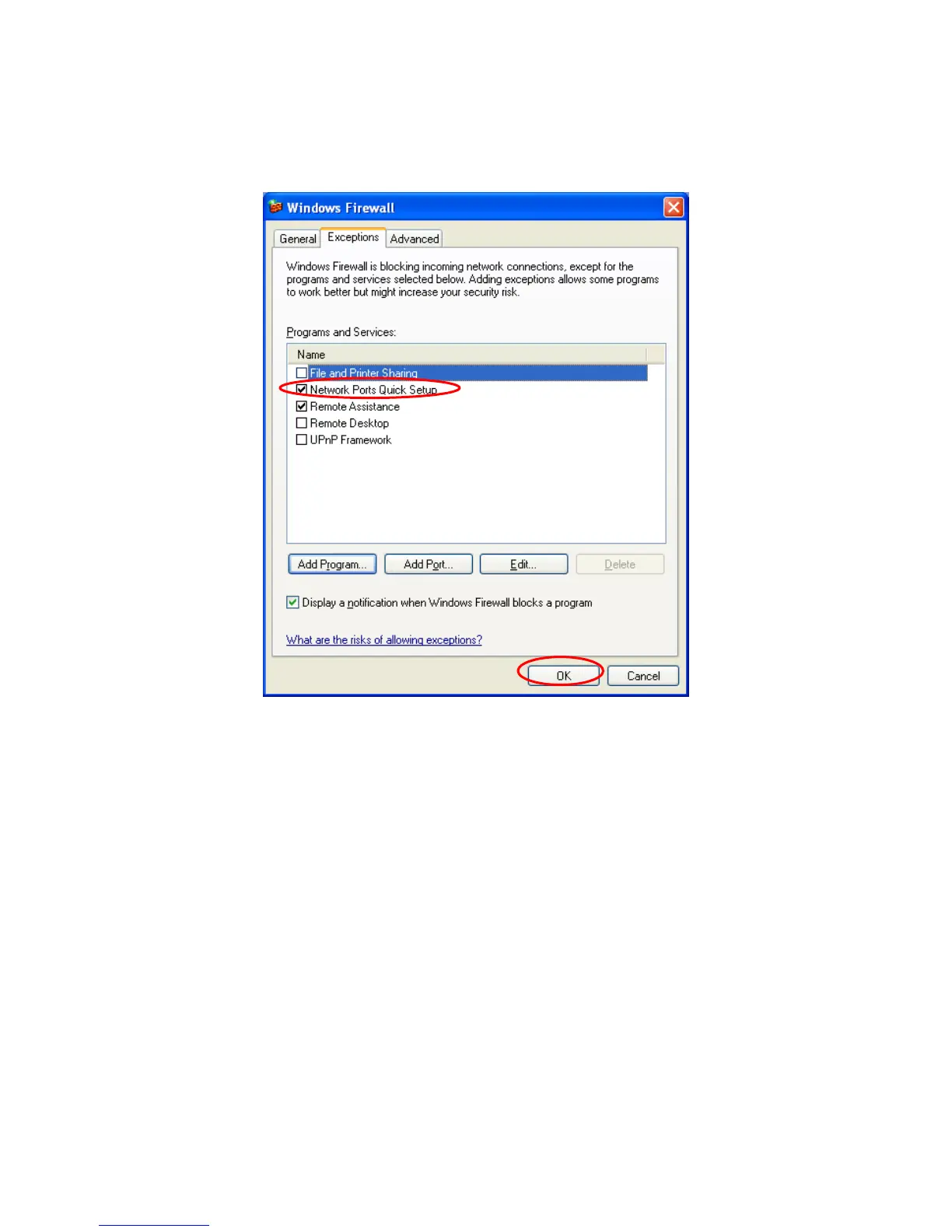 Step8. Click “Ok”. You have completed the setting. The Windows XP SP2 will allow the incoming