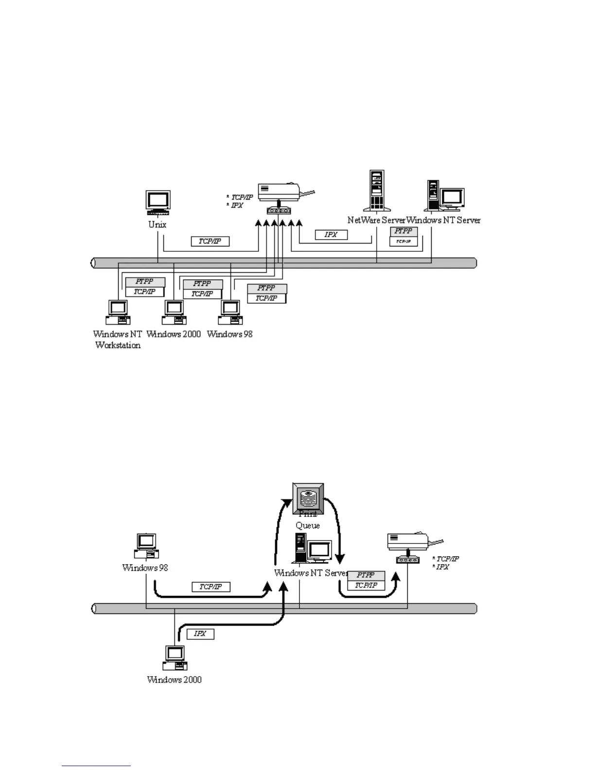 The client’s PTPP driver will use TCP/IP protocol to print through printer server.