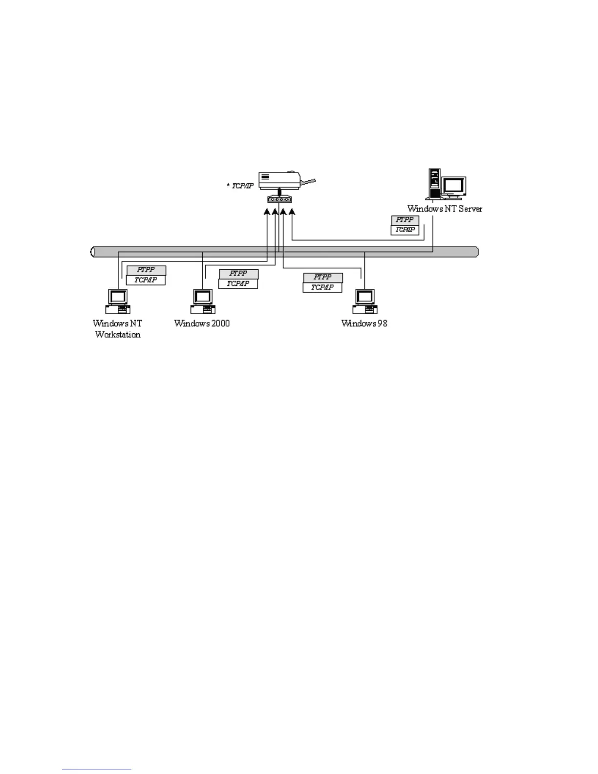 Client users must install Windows PTPP driver (Peer-to-Peer Printing) for network printing.