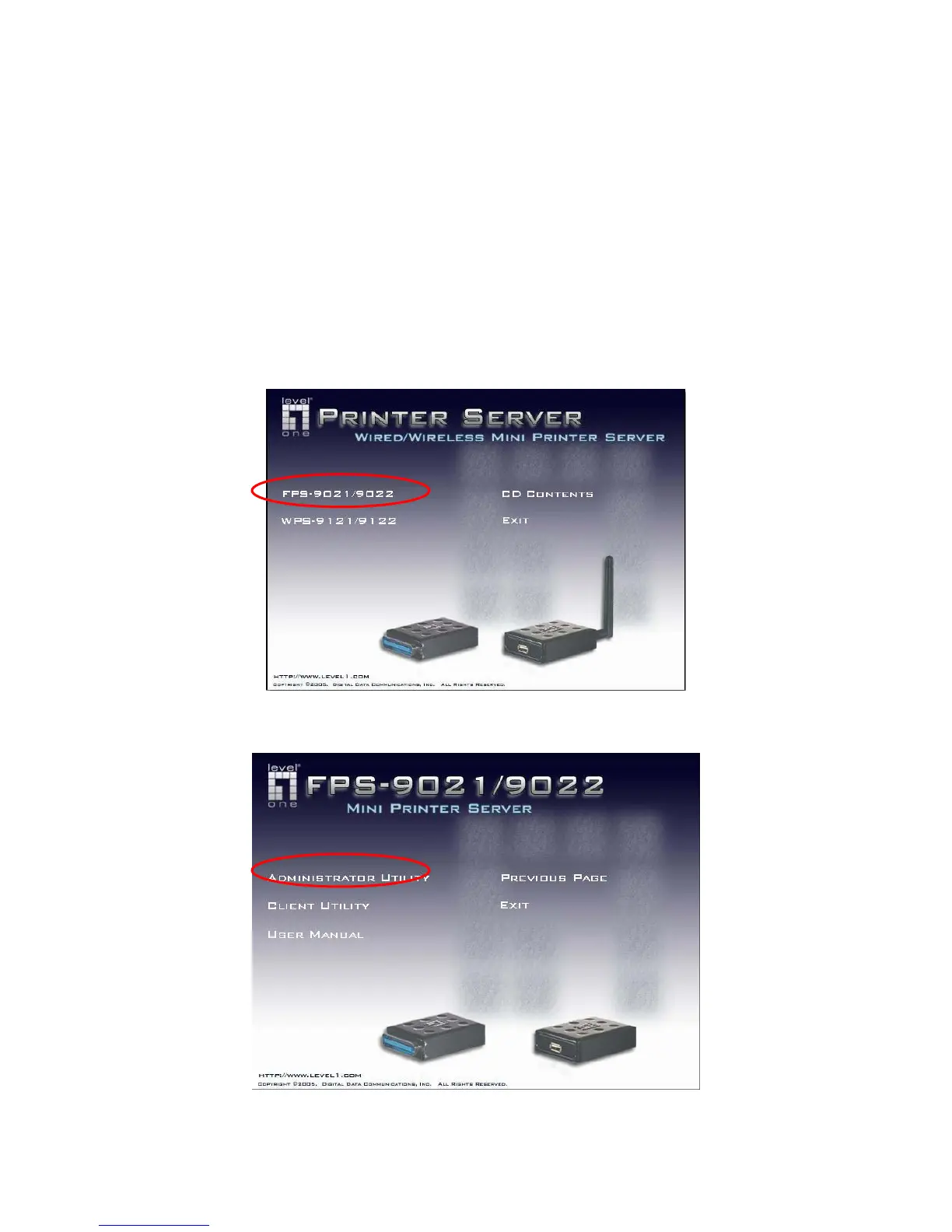 Insert the CD shipped along with the printer server into your CD-ROM drive. The Autorun.exe