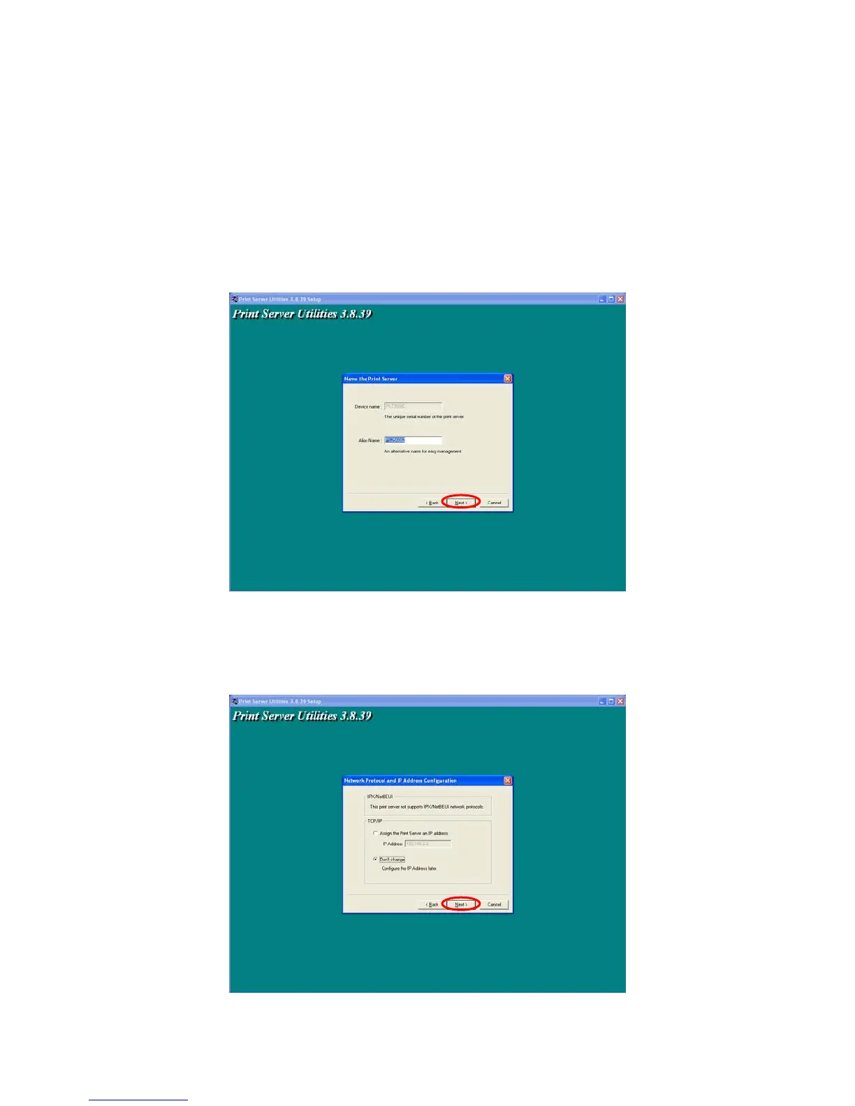 Specify the IP Address for the Printer server manually or click “Next” to keep default IP Address, i.e.