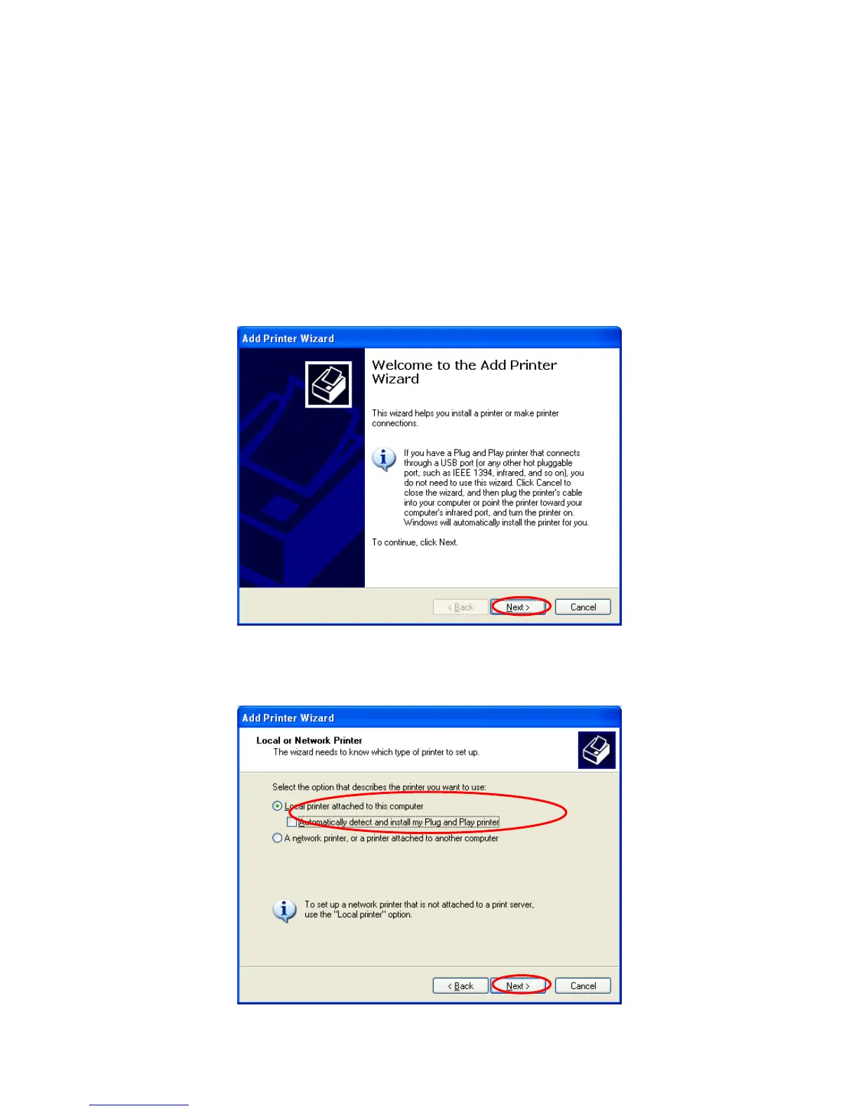 following “Add Printer” steps are running in Windows XP, the steps in other Operating Systems are