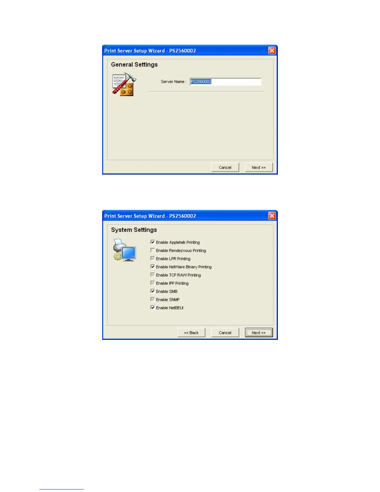 Step 2: Select to enable required printing protocol. Please refer to section 7.11 for detail