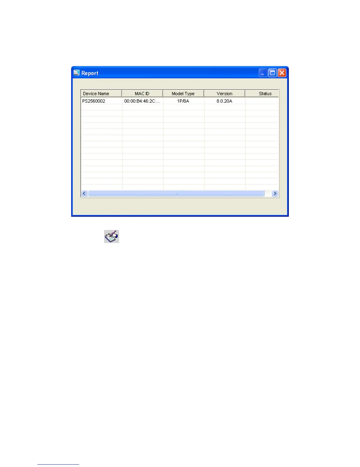 includes Device Name, MAC ID, Model Type, Firmware Version and Status of printer server.