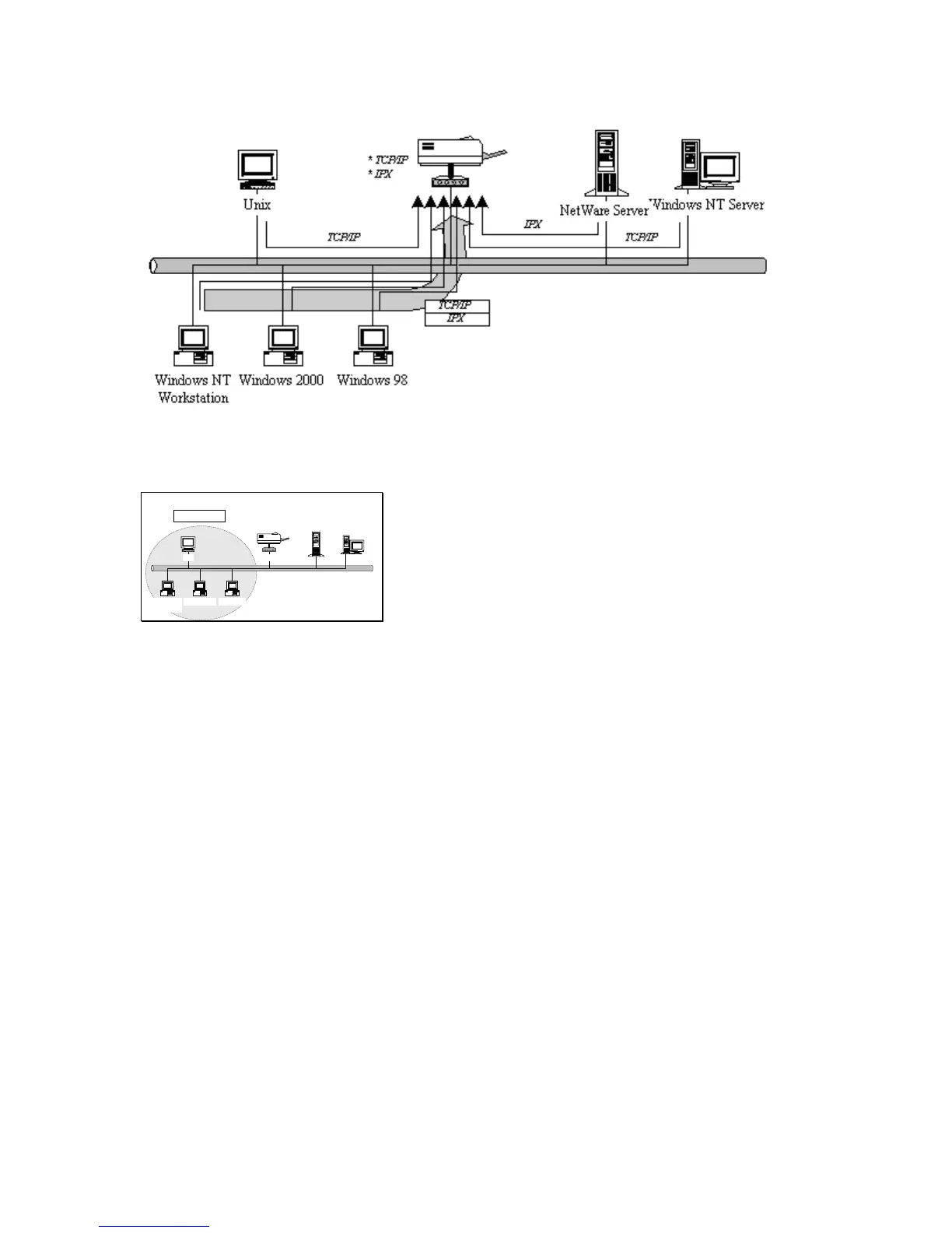 98SE/ME/2000/XP users. PTPP (Peer-to-Peer Printing) supports TCP/IP protocol.