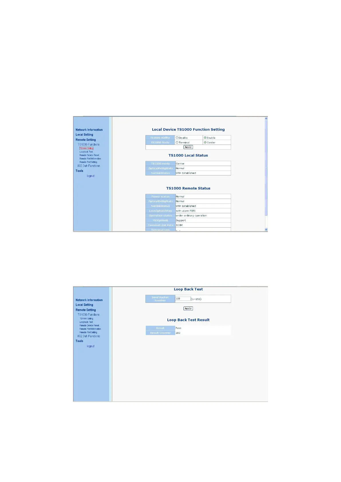 This page could start TS1000 loopback function. User could set TS1000 loopback packet number.