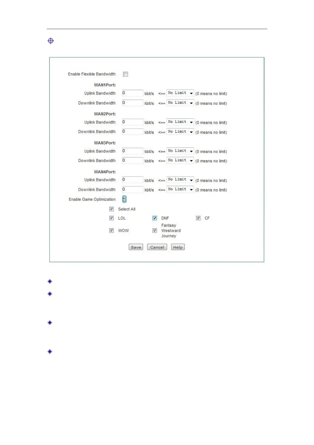 Uplink and downlink bandwidth of WAN2: Sets the uplink and downlink bandwidth of