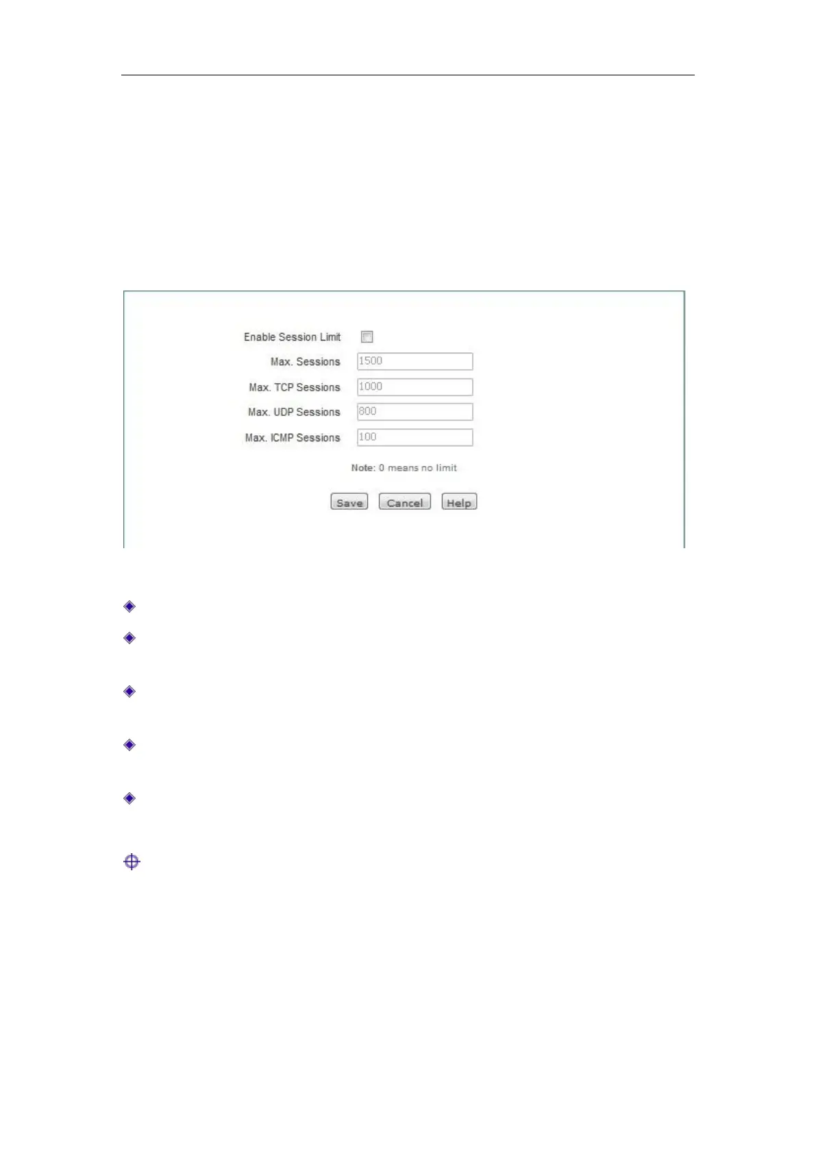 This section describes the QoS-> Session Limiting page. You can define the maximum total