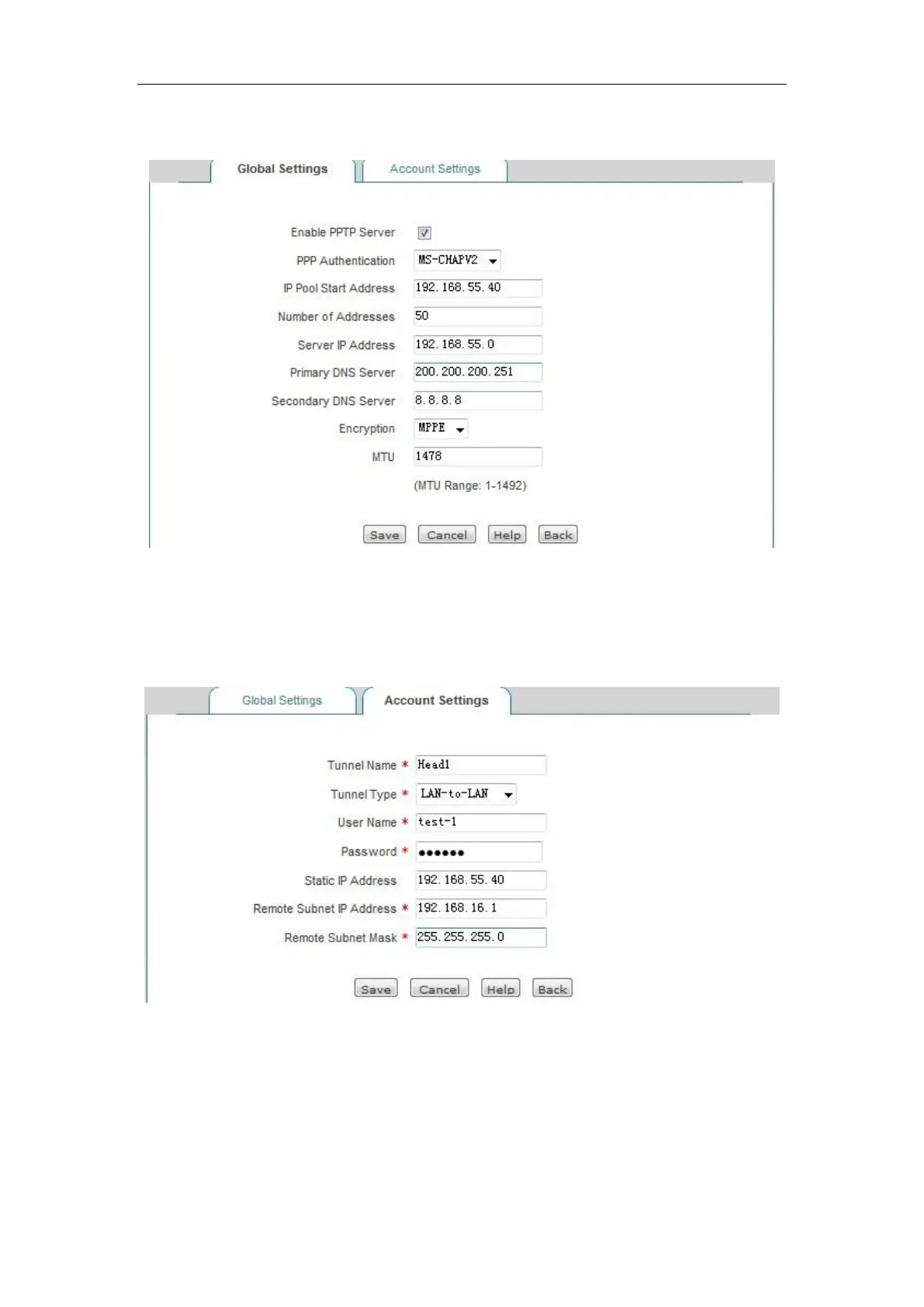 Figure 12_8 PPTP server Settings - LAN to LAN
