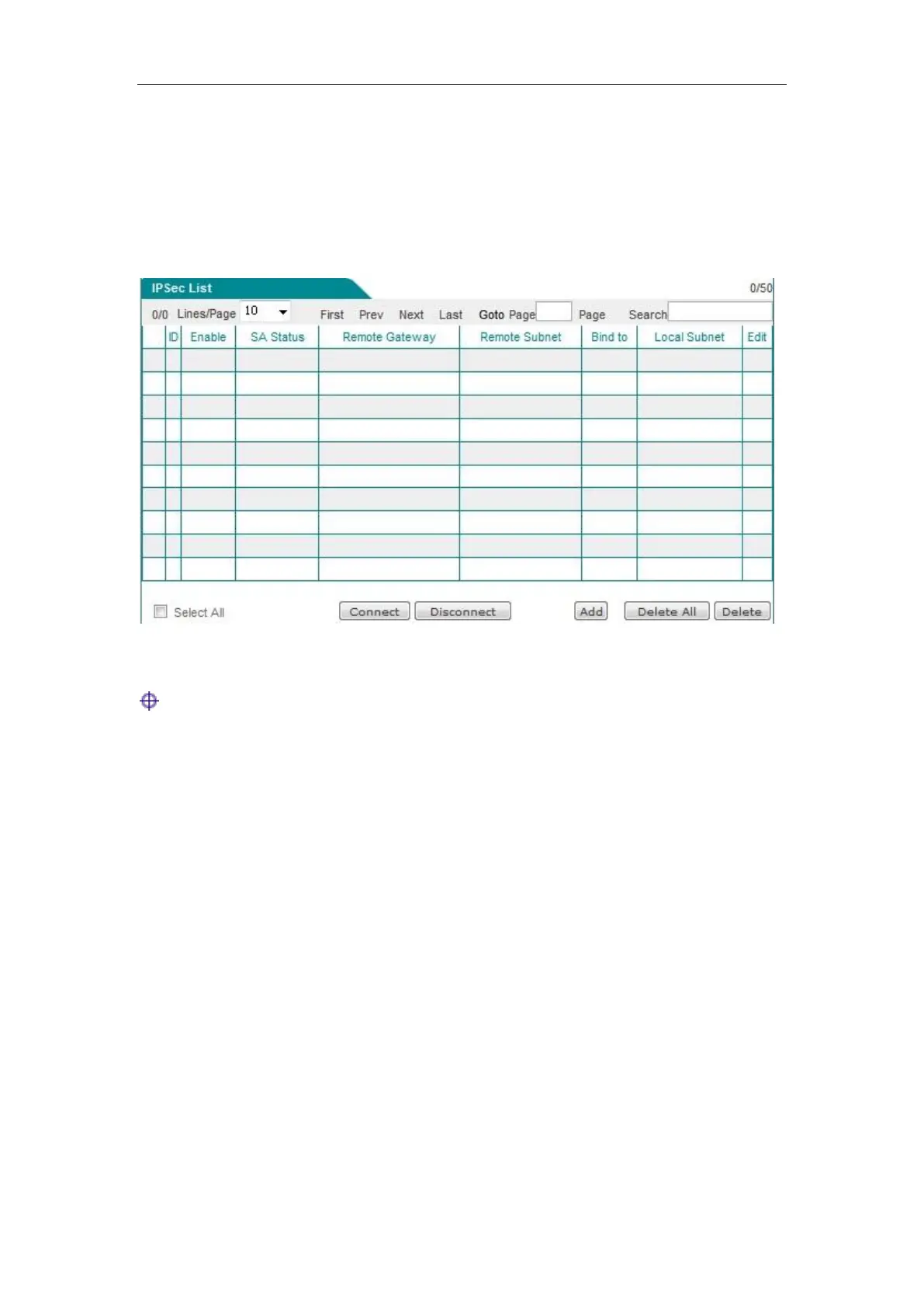 Enter the VPN configuration->IPSec page to view the information about associated IPSec tunnels,