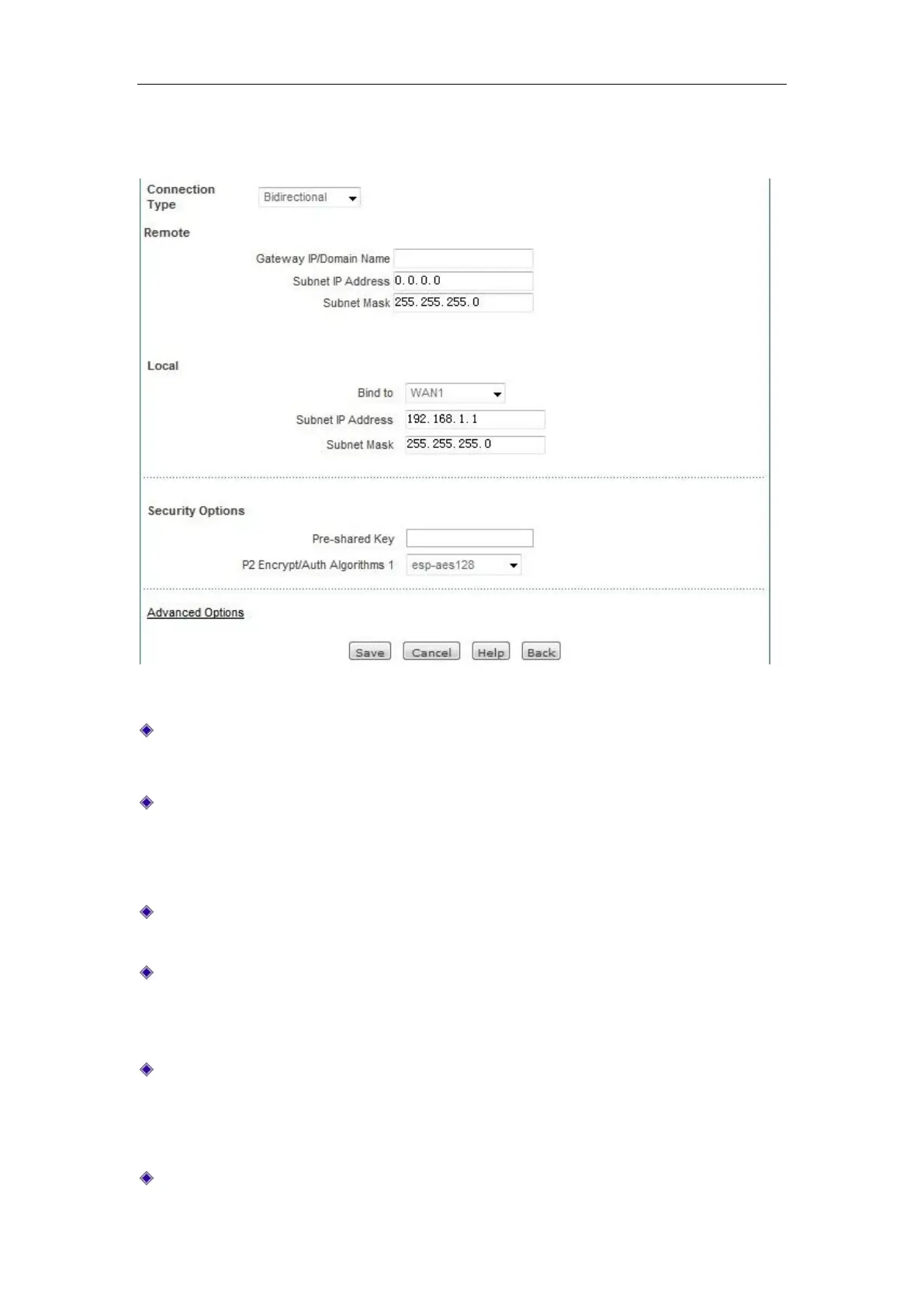 Network mask: The subnet mask of the Intranet protected at the remote end of the IPSec