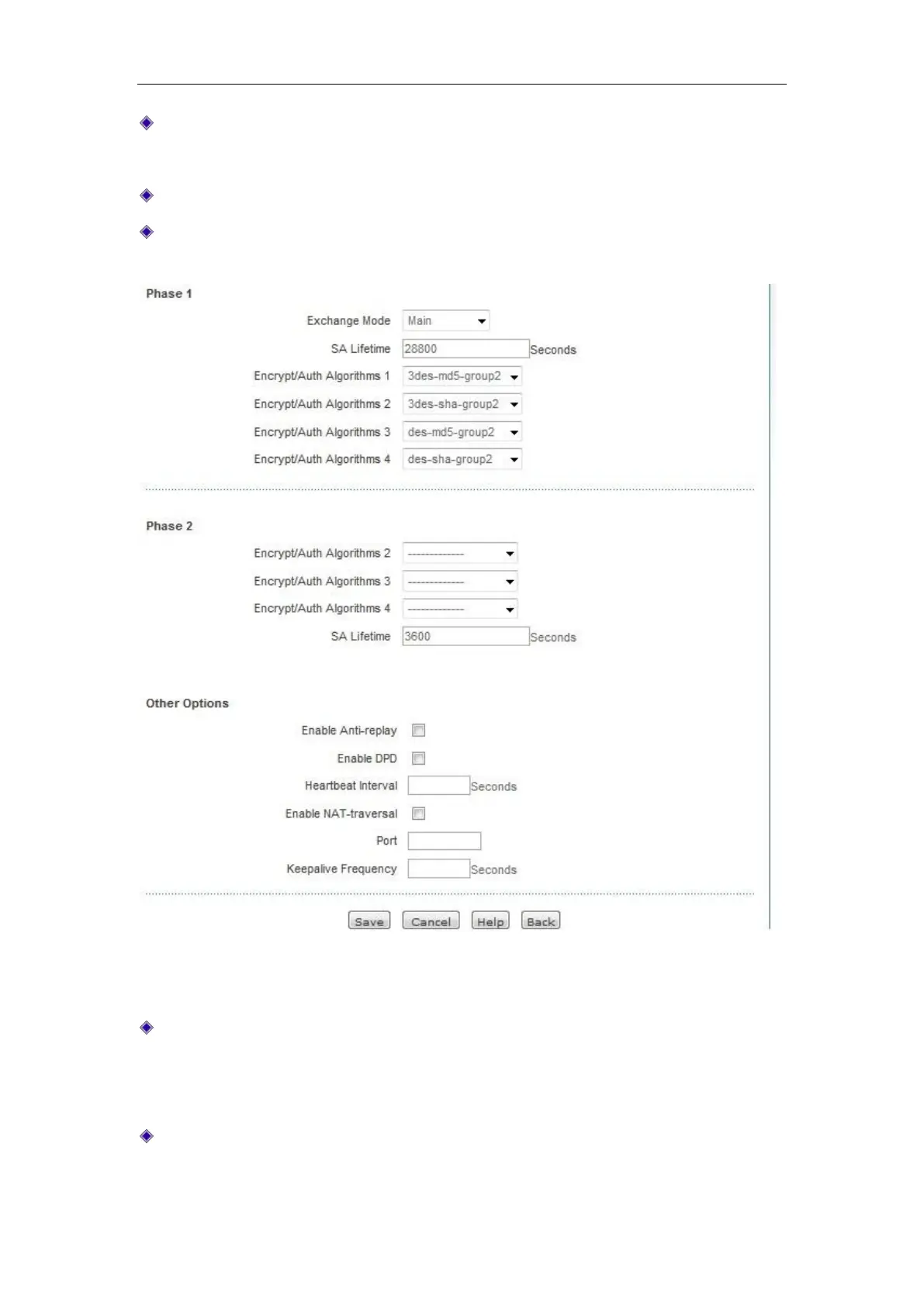 Survival time: Sets the survival time of IKE SA, which is at least 600 seconds. When the