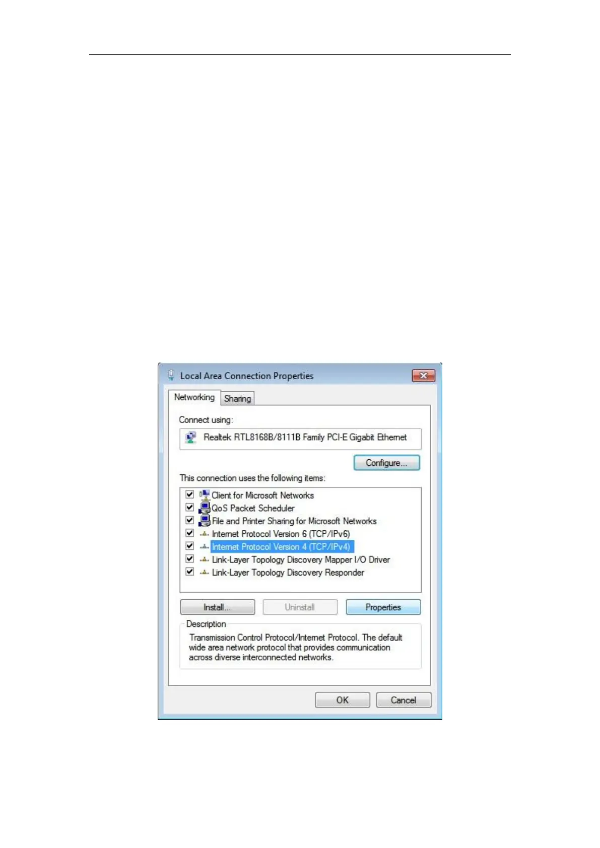 3. If the TCP/IP is not installed, first install the TCP/IP, and select "Internet Protocol (TCP/IP)"