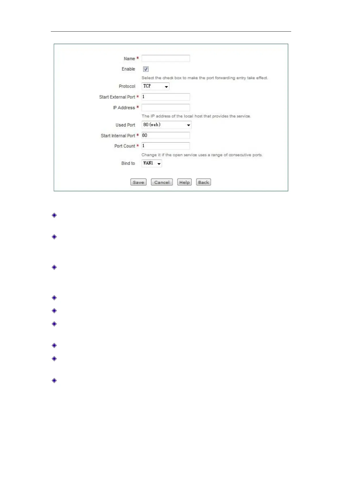 Protocol: The protocol type of packets, the available options are: TCP, UDP and TCP/UDP.