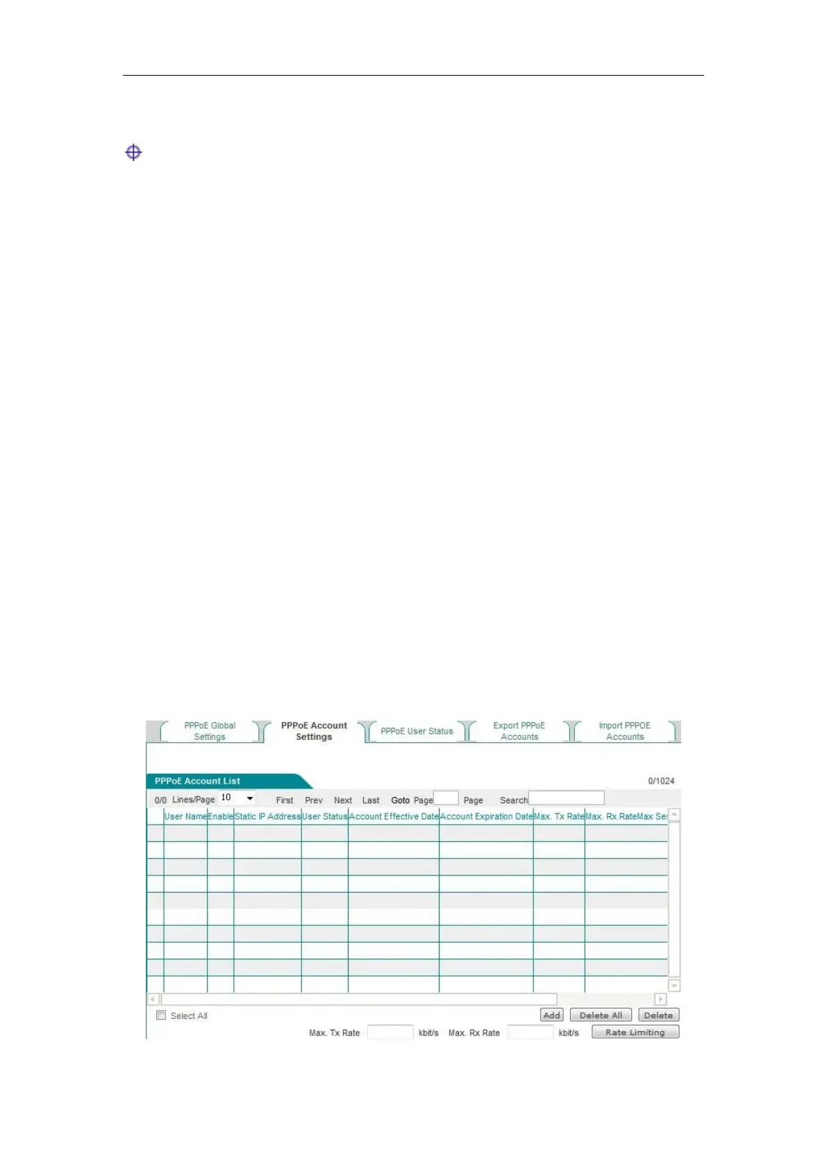 Figure 9_11) to view the PPPoE account info list. Click <Add new entry> in the page to enter into