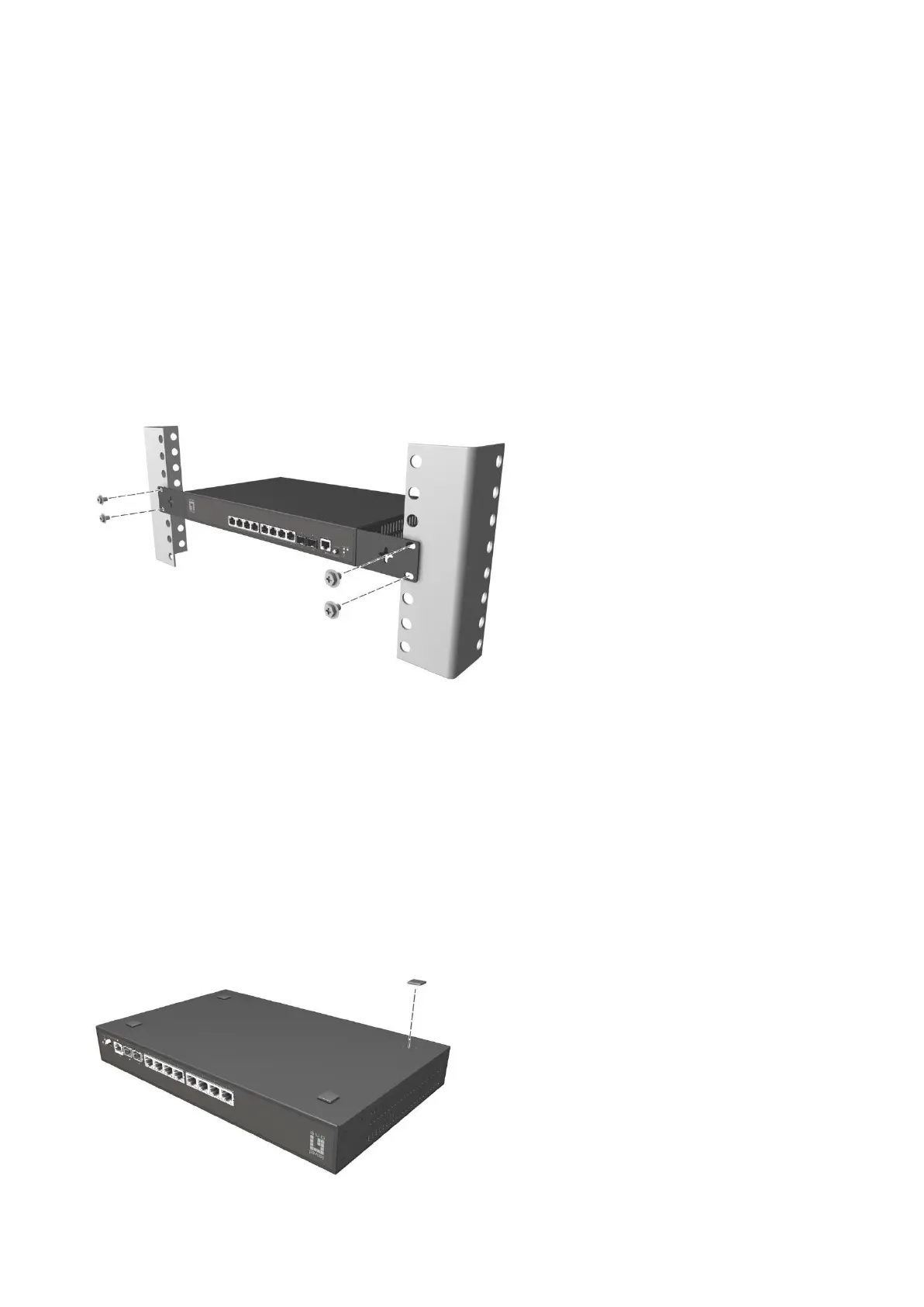 Installieren Sie die beiden mitgelieferten L-förmigen Halterungen an beiden Seiten der Switch-