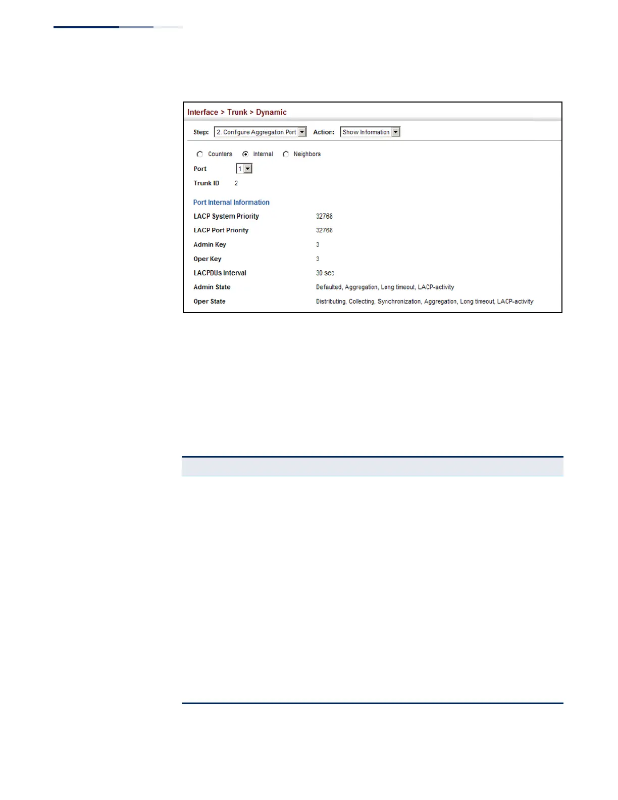Figure 57: Displaying LACP Port Internal Information